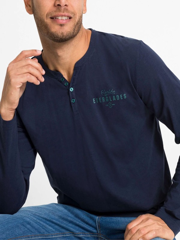 The Henley top is a style classic that no wardrobe is complete without. Made with a soft cotton that feels as good as it looks. Featuring a notch neckline with button fastening, long sleeves and banded hem. Length 28in.