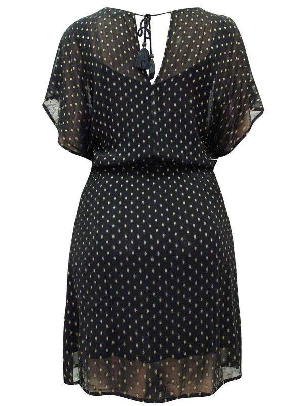Adorned with a metallic spot print and tassel detail, this dress is just perfect for those late summer evenings. Featuring a scoop neckline with keyhole detail at the back, flutter sleeves and an elasticated waist. Lengths; Regular 37in, Tall 40in.