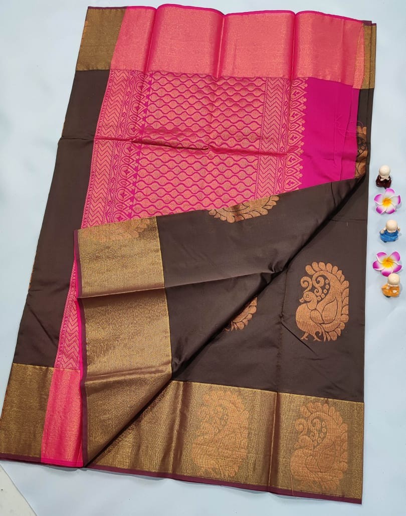 *_Contrast Rich pallu..Contrast blouse_* ..