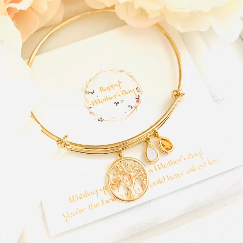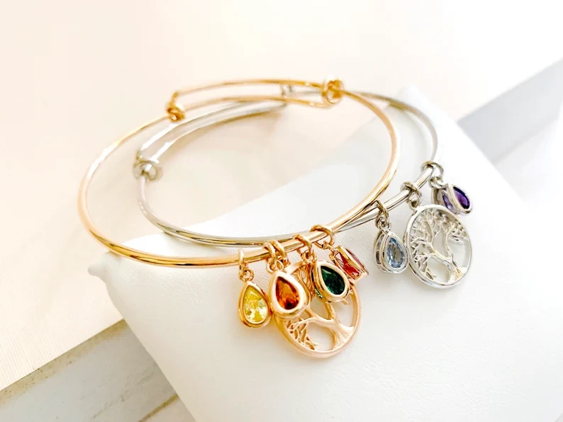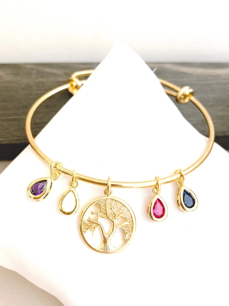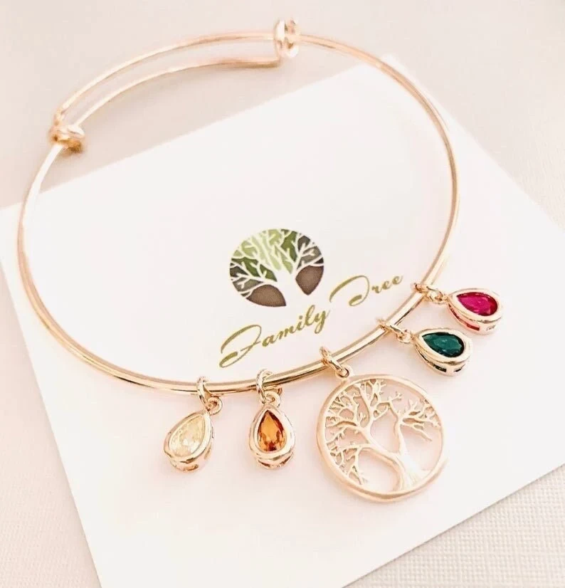 Birthstone Charm Bracelet For Mom, Grandmother Gratitude, Moms Bracelet, Family Tree Bracelet