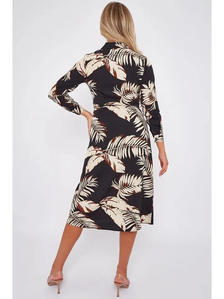This Mono Geometric Print Maxi Shirt Dress features a bold monochrome pattern, a belted waist for a flattering silhouette, and a curved hem for added style. With two side pockets for convenience, this dress is both functional and fashionable. Perfect for a variety of occasions, it can be dressed up for the office, styled casually for a weekend brunch, or accessorized for an evening out.