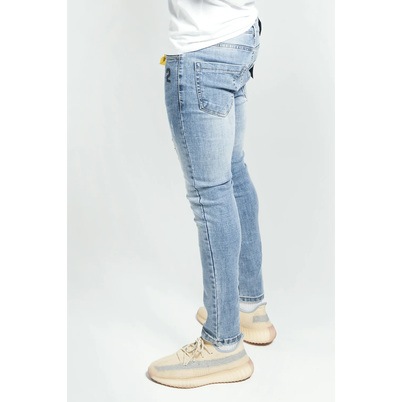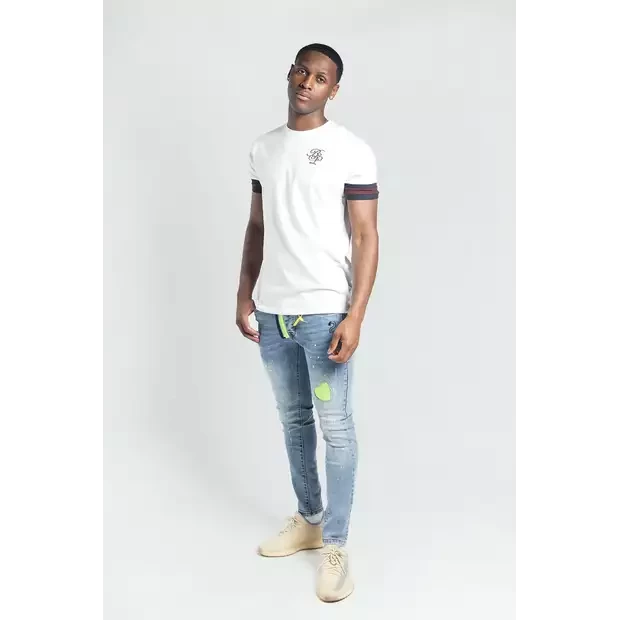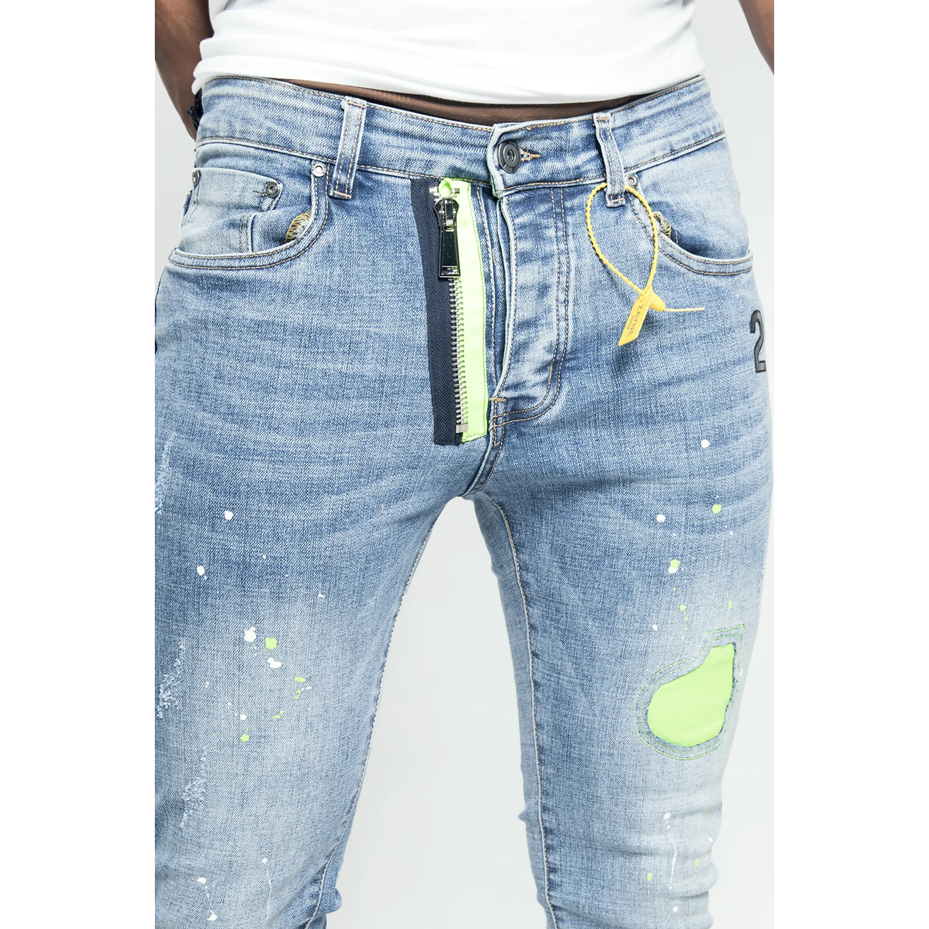 Neon Green and blue distressed slim jeans
