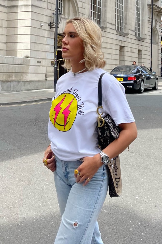 Neon Smile Print with 'Let The Good Times Roll' Text