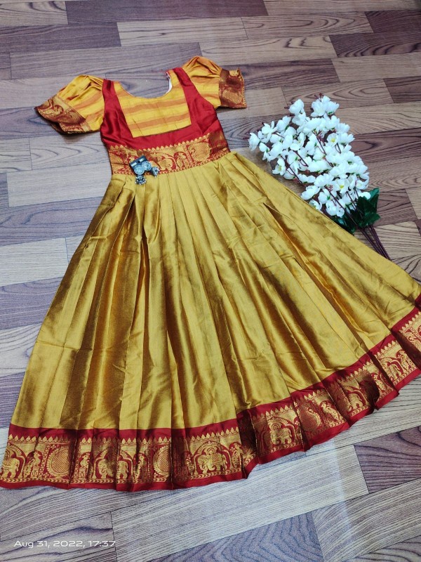 Gown fabric : full stiched luchi silk febric with self box top same as pic. Lining : heavy crape (full upto bottom)
