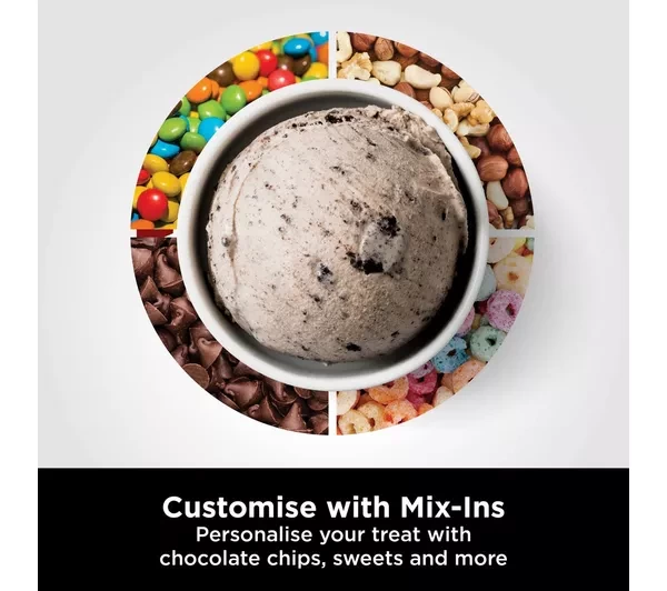 - Use the mix-in program to add extra ingredients like chocolate chips, candy, nuts and more - the machine will distribute them evenly throughout the ice cream for maximum deliciousness