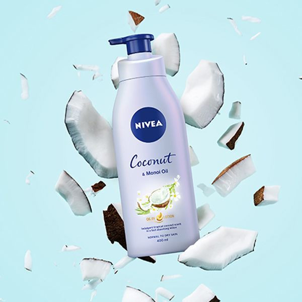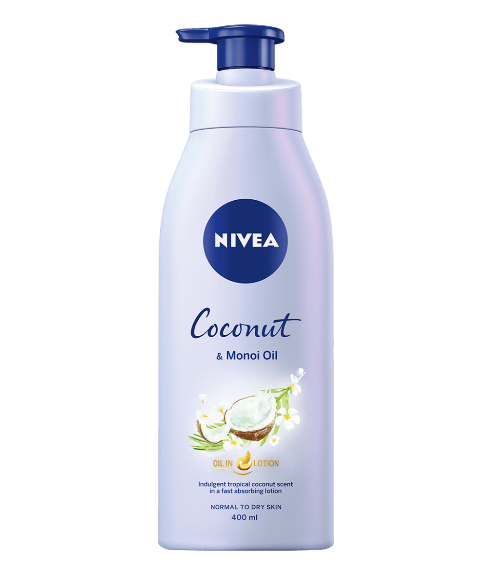 Enjoy the indulgent care of oils in a fast absorbing body lotion: NIVEA Oil in Lotion Coconut & Monoi Oil