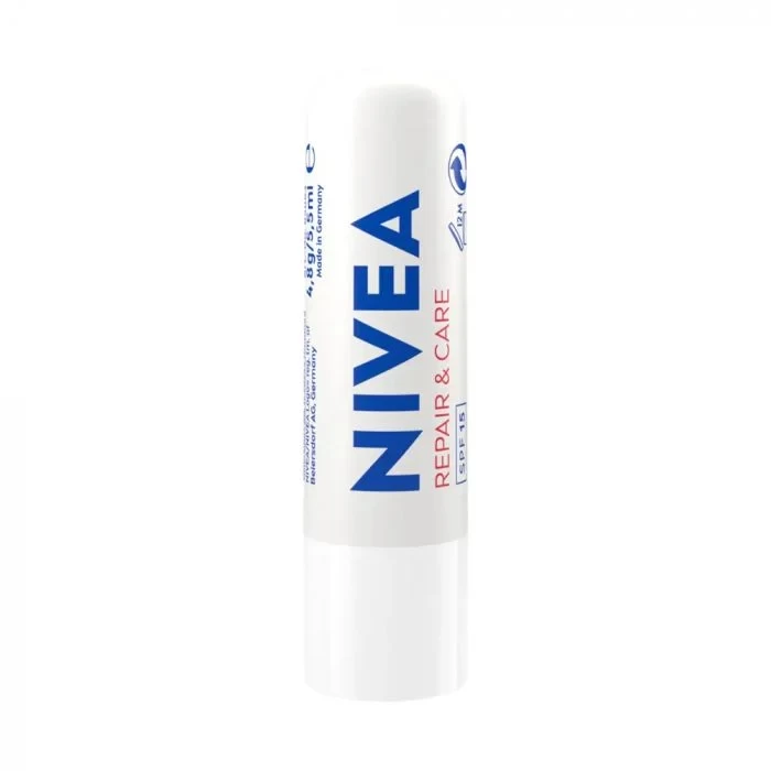 NIVEA Repair & Care provides the relief your chapped lips need and deserve! This unique, soothing formula with natural oils enriched with vitamins and natural origin ingredients immediately melts into your lips, providing instant relief and moisture for 24 hours*. Get help to repair your chapped lips! That's not all! It is also formulated with SPF 15 to protect your lips against the harmful effects of the sun. It is free of mineral oils. Turn your lips smooth and supple and prevent them from getting chapped again! The skin compatibility of this lip balm has been dermatologically approved. *clinically tested