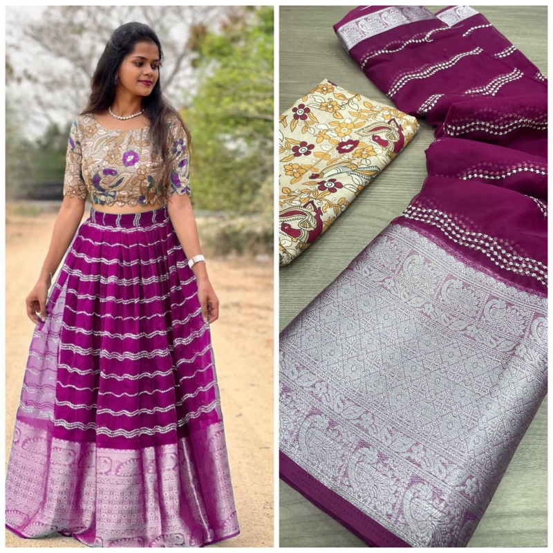 Frock Style Lahenga RIVAAJ Fabric Nylon Orgenza Jacquard Multi Emrodiry Work Lengha & Digital Printed Blouse Lengha :- 3 Meter Fabric Blouse :- 0.80 Cm