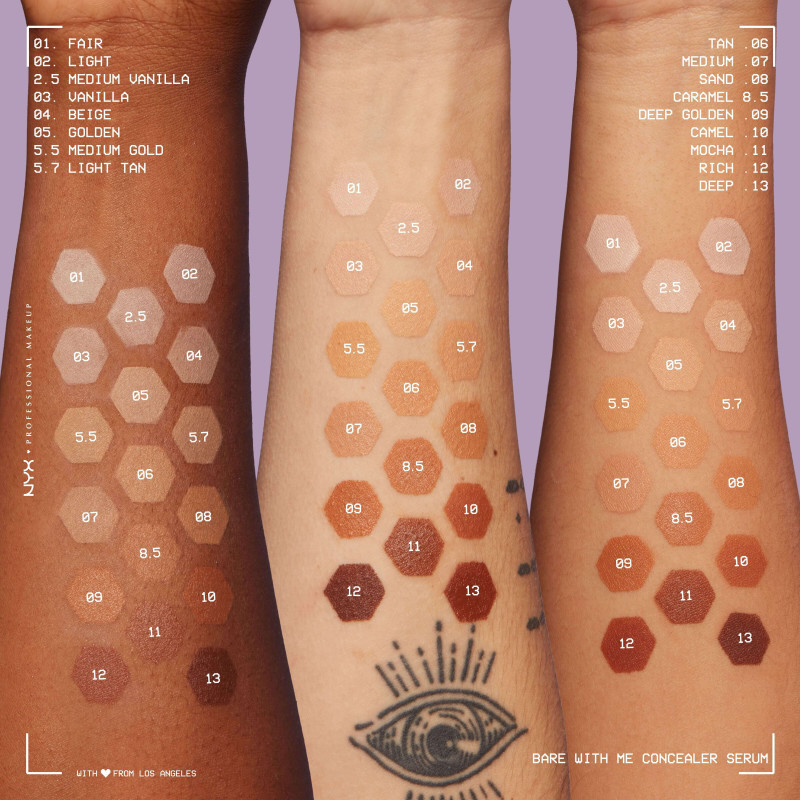NYX Professional Makeup Bare With Me Serum Concealer 9.6ml – 11 Mocha is a lightweight serum-infused concealer designed to provide natural medium coverage while delivering deep hydration to the skin. Its innovative skincare-makeup hybrid formula helps conceal dark circles, blemishes, redness, and uneven skin tone while keeping the skin feeling soft and moisturised. Shade 11 Mocha is ideal for deep to very deep skin tones, blending smoothly for a seamless and balanced finish. The water-based formula glides effortlessly onto the skin and blends easily without looking heavy or cakey. Infused with skin-loving ingredients such as tremella mushroom, cica extract, and green tea, the concealer helps soothe and hydrate the skin while improving its overall appearance. It provides up to 24 hours of hydration, making it ideal for dry, stressed, or sensitive skin. The breathable formula offers medium buildable coverage that looks natural and skin-like. Its smooth texture helps minimise the appearance of dryness and uneven texture for a fresh complexion. The concealer works well under the eyes, on blemishes, or anywhere extra coverage is needed. It can even be used on the face and body for targeted correction. The lightweight consistency blends easily using fingers, brushes, or makeup sponges. Designed to provide a radiant natural finish that enhances the skin’s glow. Suitable for all skin types including dry and sensitive skin. The pump packaging allows controlled and hygienic application. NYX Professional Makeup Bare With Me Serum Concealer 11 Mocha delivers hydrating coverage, soothing skincare benefits, and a naturally flawless finish. ✨