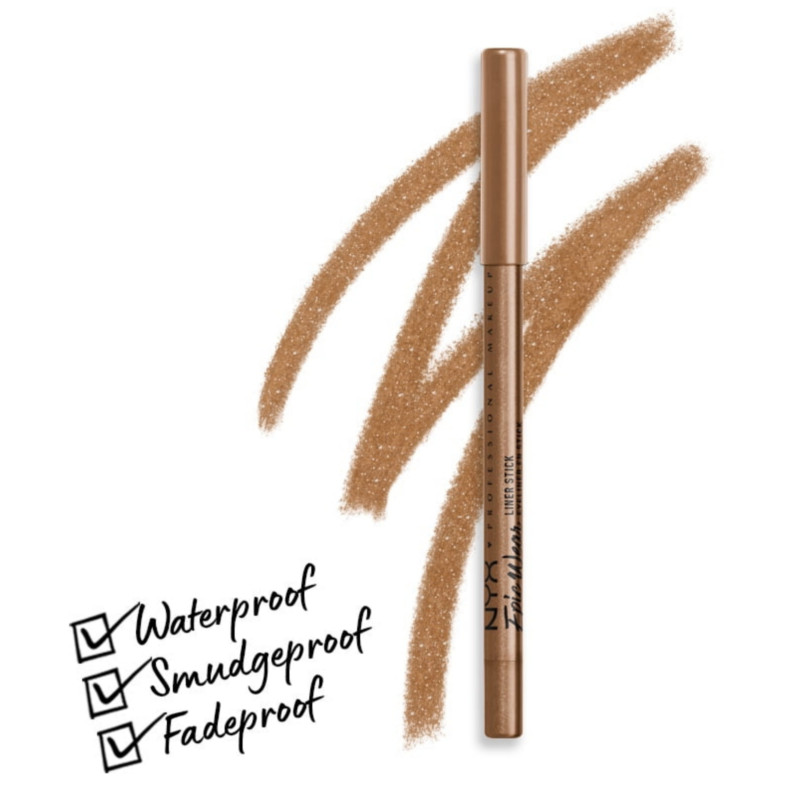 NYX Professional Makeup Epic Wear Eyeliner Stick Long-Lasting Waterproof Eyeliner Pencil - Gilded Taupe is a sophisticated metallic shade that blends the warmth of taupe with a luxurious golden shimmer, creating a versatile look that transitions effortlessly from day to night, formulated with intense pigmentation, it delivers bold, striking color in just one stroke, the ultra-creamy texture glides smoothly across the eyelid without tugging or dragging, making application easy and precise, its long-lasting waterproof formula is designed to resist smudging, fading, or transferring, ensuring up to 36 hours of vibrant wear, the gilded finish adds depth and luminosity, catching the light beautifully to make your eyes stand out, perfect for both subtle definition and dramatic artistry, it can be worn alone for a sleek metallic look or paired with other shades for multi-dimensional styles, this eyeliner is versatile enough for tightlining, waterline application, or graphic eye designs, its crayon format gives you full control for detailed lines or blended smoky effects, ideal for makeup enthusiasts and professionals alike, the shimmering taupe complements all skin tones and enhances every eye color, offering a neutral yet glamorous twist, durable enough to withstand heat, humidity, or long days, it’s a go-to for reliable wear, the comfortable formula makes it easy to wear all day without irritation, adding elegance and creativity to your routine, Gilded Taupe is the perfect shade for those who want subtle glamour with long-lasting impact.