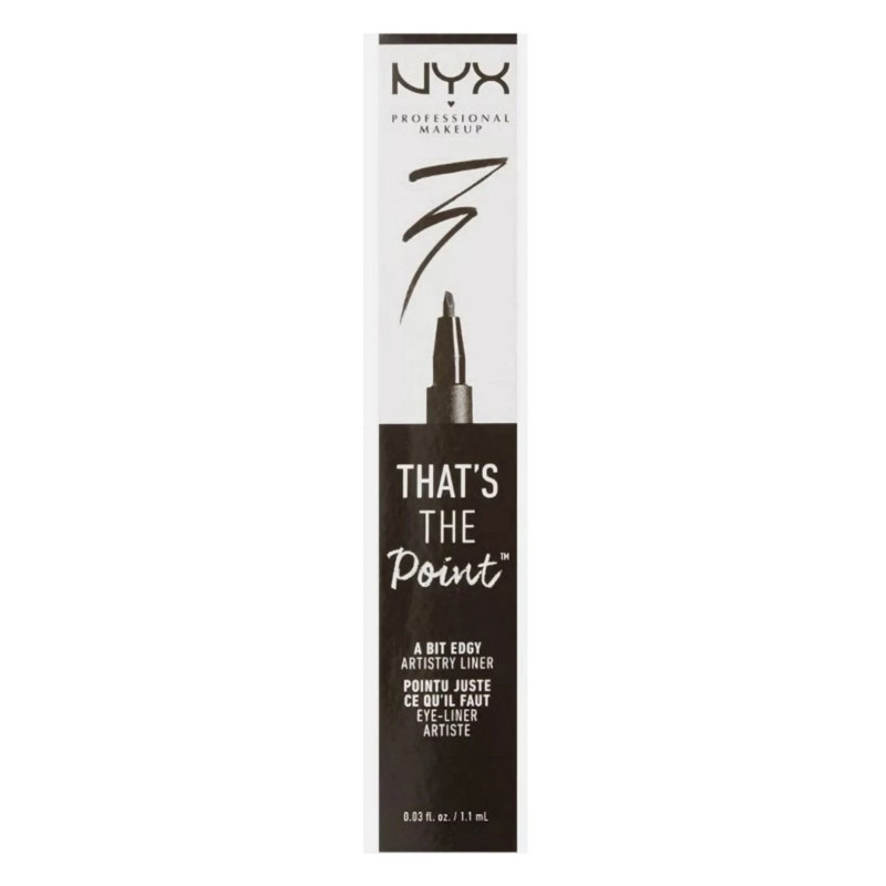 NYX Professional Makeup That’s The Point Eyeliner in 03 Black offers ultra-precise application and intense pigment for creating sleek, bold, and defined eye looks with ease. Featuring a unique felt-tip applicator with a carefully designed shape, this eyeliner gives you full control to create everything from sharp wings to fine lines with expert precision. The deep black, satin-matte formula glides on smoothly without skipping, tugging, or bleeding, delivering high-impact colour in a single stroke. Its long-wearing, smudge-resistant formula stays put throughout the day, making it ideal for both everyday wear and dramatic eye looks. Lightweight and comfortable on the lids, it dries quickly to prevent transfer and maintains a flawless finish. Whether you're going for a minimalist flick or graphic eyeliner artistry, this pen adapts to your style with ease. The ergonomic design allows for steady grip and controlled movement, even for beginners. Compact and travel-friendly, it’s perfect for makeup bags and on-the-go touch-ups. Suitable for all eye shapes and skin types, it enhances eyes effortlessly. Cruelty-free and vegan, it aligns with ethical beauty choices. For crisp, long-lasting eyeliner looks with professional precision, NYX That’s The Point in Black is an essential must-have.