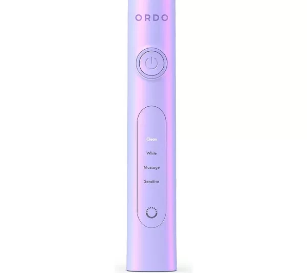 Ditch the breath blues and show off those pearls for good. This Ordo Sonic+ toothbrush has sonic vibrations that remove plagues, keep your gums clean. Choose between 4 modes to massage, clean and whiten your teeth. Try the Sensitive mode when they need extra care. Plus the 2-minute quad pacer signals you to switch areas every 30 seconds, so you don't miss a spot.