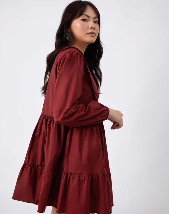 Oversized Collar Cotton Mini Dress in Burgundy | Alice