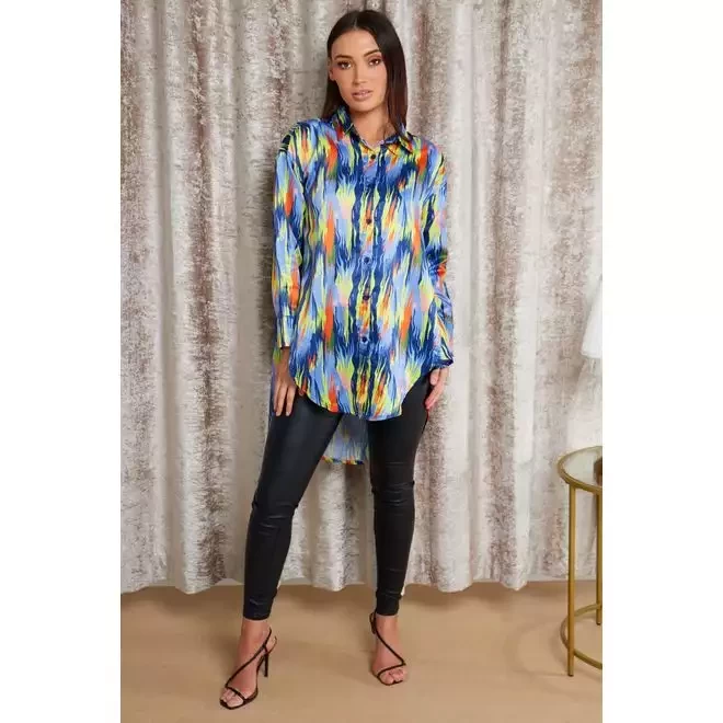 Oversized Dip Hem Satin Shirt Dress