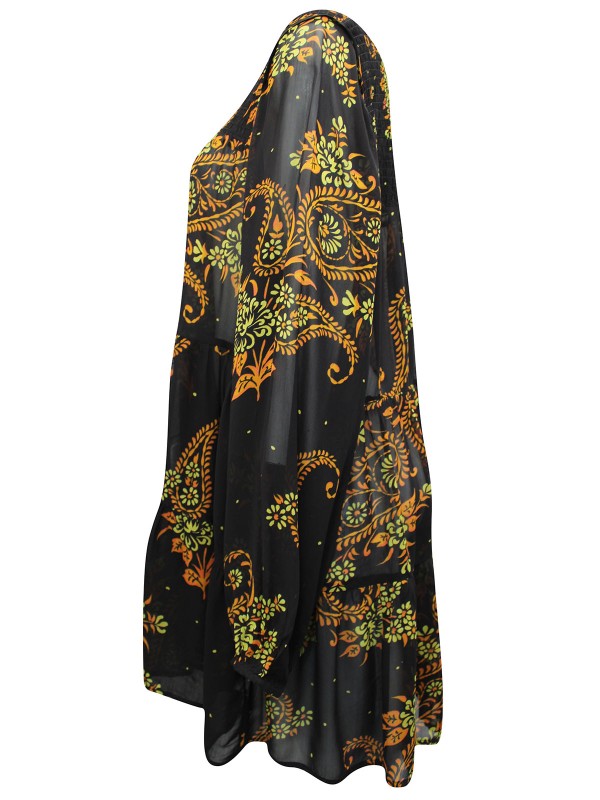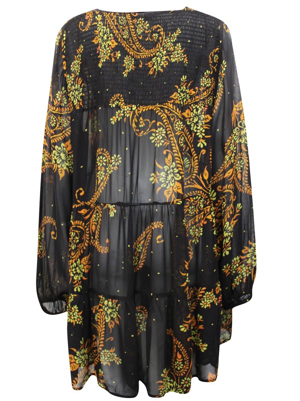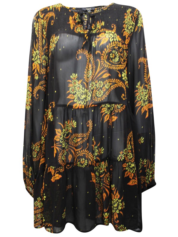 Easy, breezy and chic, say hello to your new favorite! This style is finished with a relaxed silhouette, with a tie neck and tiered detail for an easy-going aesthetic. Length 34in.