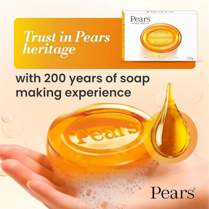 Pears Pure and Gentle Transparent Soap Bar with Natural Oils is a mild and refreshing cleansing bar designed for everyday skin care. Its iconic transparent formula gently cleanses the skin without stripping away essential moisture. Enriched with natural oils, it helps nourish the skin while maintaining its natural softness. The gentle lather cleans effectively yet feels light and soothing on the skin. It is suitable for all skin types, including sensitive skin. The soap leaves the skin feeling smooth, fresh, and comfortable after every wash. Its pure formulation helps minimize dryness and irritation. Pears soap is dermatologically tested for safe daily use. The light, clean fragrance enhances the bathing experience without being overpowering. It rinses off easily, leaving no sticky residue behind. Ideal for both face and body cleansing routines. Regular use helps support clear and healthy-looking skin. The compact 75g size is perfect for travel or everyday convenience. Trusted by generations for its gentle care and purity. Pears Pure and Gentle Soap delivers clean, soft, and naturally radiant skin day after day.