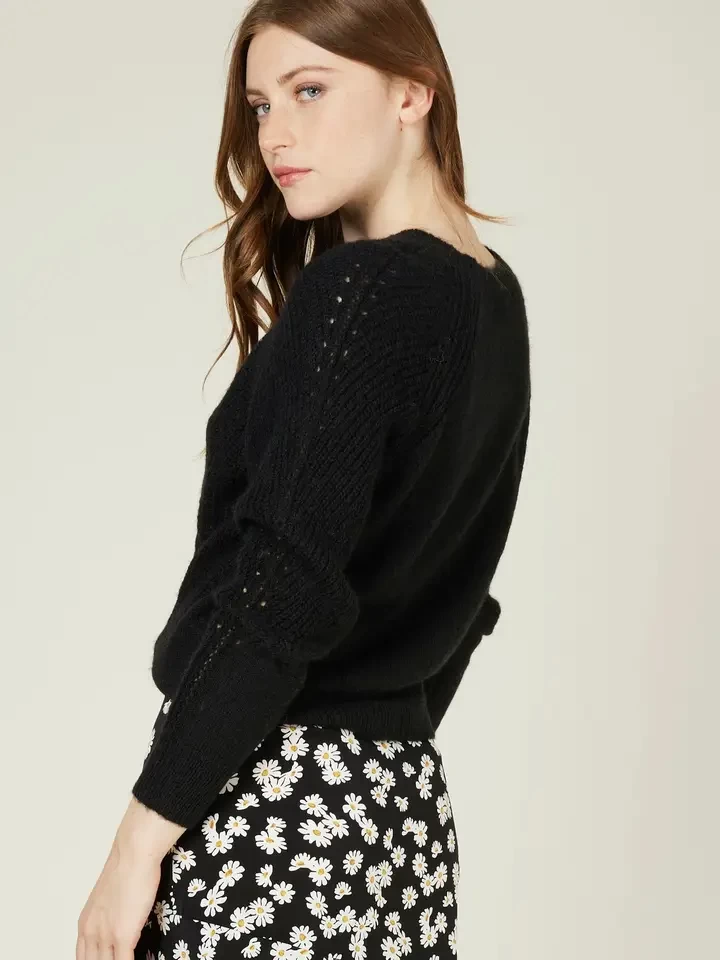 Enhance your look with our PEGGY. This openwork sweater, made from a soft composition of 50% ACRYLIC, 30% WOOL and 20% MOHAIR, promises warmth and comfort. Its unique design, in a bright cream shade, features delicate openwork patterns, adding a touch of sophistication. The slim fit and fine finishes ensure an elegant silhouette. Also available in BLACK, FOREST and PURPLE, this sweater is the ideal choice for a chic and trendy look. Perfect for online shopping, find your ideal size and add a touch of elegance to your wardrobe with PEGGY. Info: Composition: 50% ACRYLIC, 30% WOOL, 20% MOHAIR Machine wash at 30° delicate 50% ACRYLIC -30% WOOL -20% MOHAIR