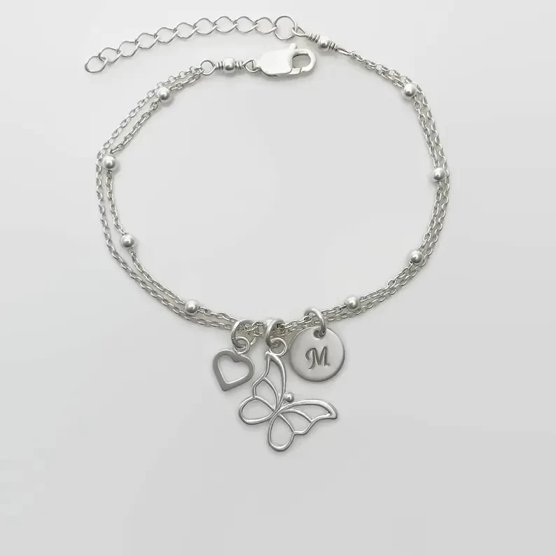 Personalized Butterfly Bracelet in Sterling Silver - Adjustable Butterfly Bracelet