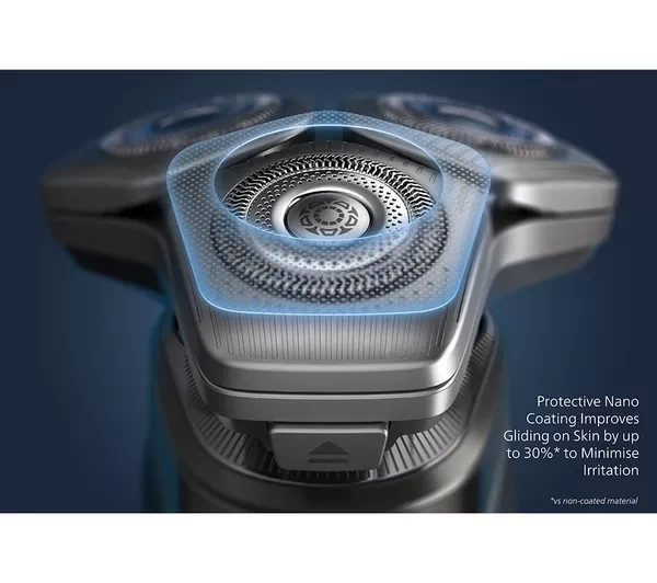 Struggling to get that perfect clean shave? This Philips shaver's got 360 D Flexing heads that adjust to the contours of your face for a close shave, even on tricky areas like your chin, neck and jawline. With the 45 self-sharpening blades and Nano SkinGlide coating, you'll always get great results, whether you prefer a dry or wet shave with gel or foam. And if you forget to charge it over night, just plug it in for 5 minute power boost that'll give you one full shave.