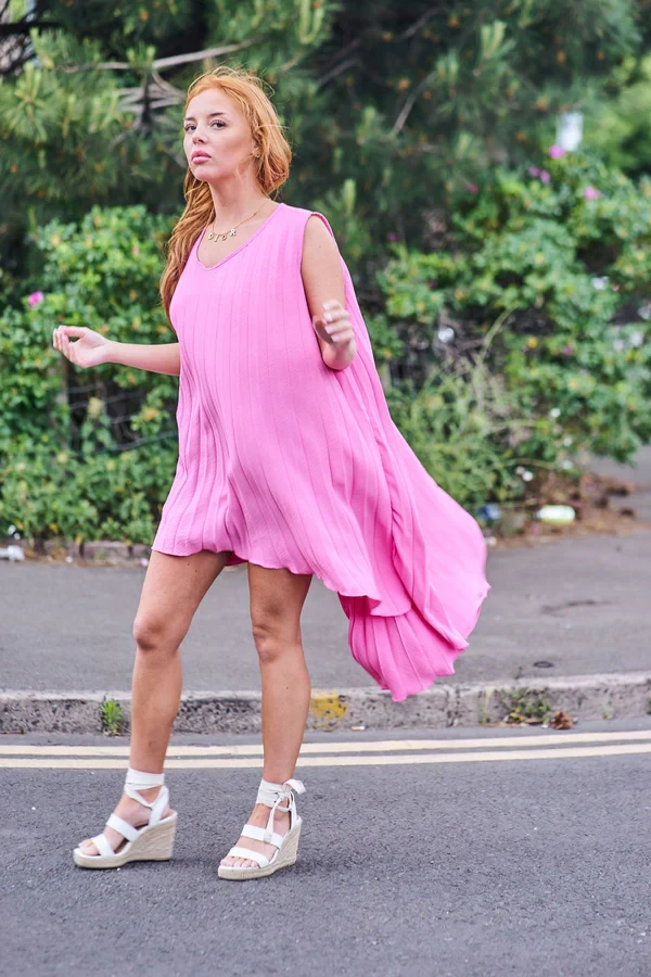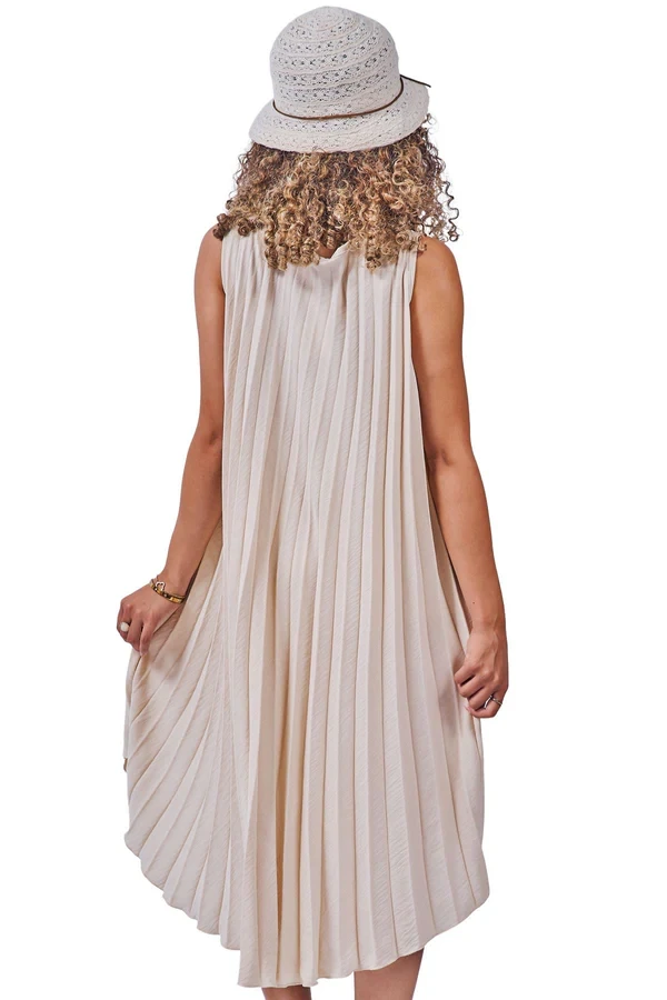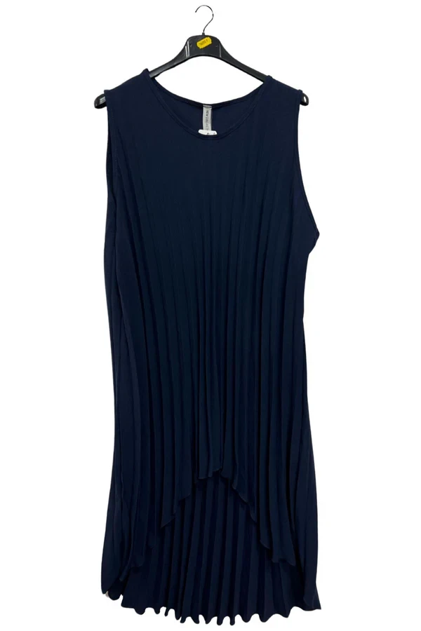 Step into effortless elegance with this plus-size asymmetrical dress, inspired by timeless Italian design. Crafted from lightweight polyester or chiffon-style fabric, it features soft pleats that cascade gently down a high-low hemline, creating graceful movement with every step. The round neckline and sleeveless cut offer a breezy, casual feel ideal for spring and summer days. Whether you're heading to a weekend brunch or strolling through sunlit streets, this loose-fitting dress combines comfort and sophistication. The clean, plain design makes it perfect for layering with bold accessories or standing alone as a statement of minimalist charm. Designed to flatter fuller figures, it offers a relaxed silhouette that moves beautifully. It's a versatile addition to any wardrobe, fusing European chic with practical wearability.