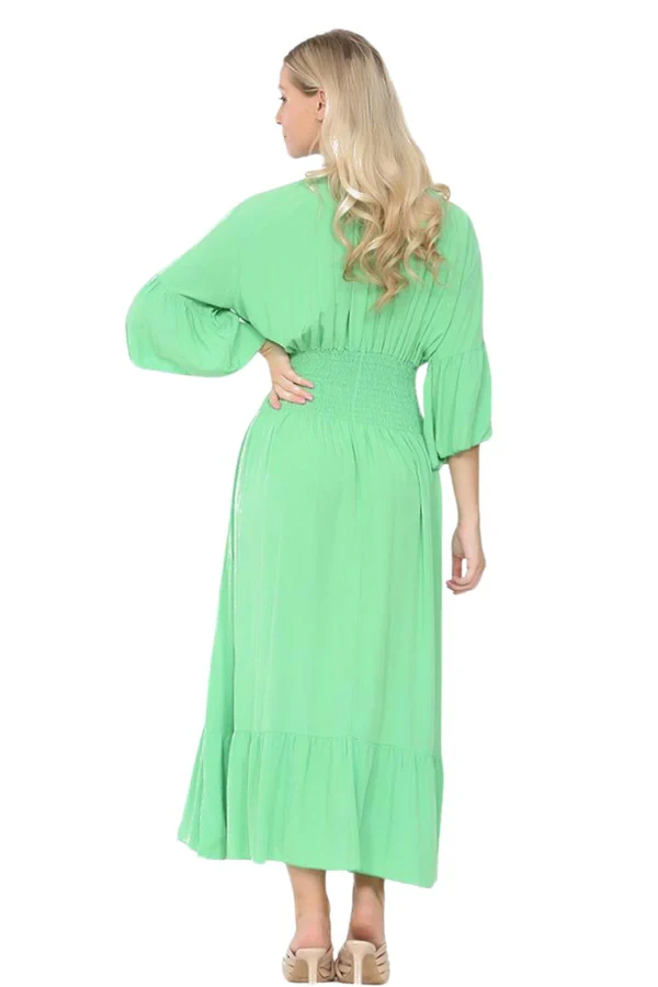 If you want to look sexy effortlessly- and you don’t know how to get this shirring waist maxi dress. Maxi has always been the first pick of women when it comes to looking appealing. Short frill sleeves are just flawless to go with any type of jeans and trousers you like. Plain style always speaks for itself- get the elasticated and comfortable Italian masterpiece now!