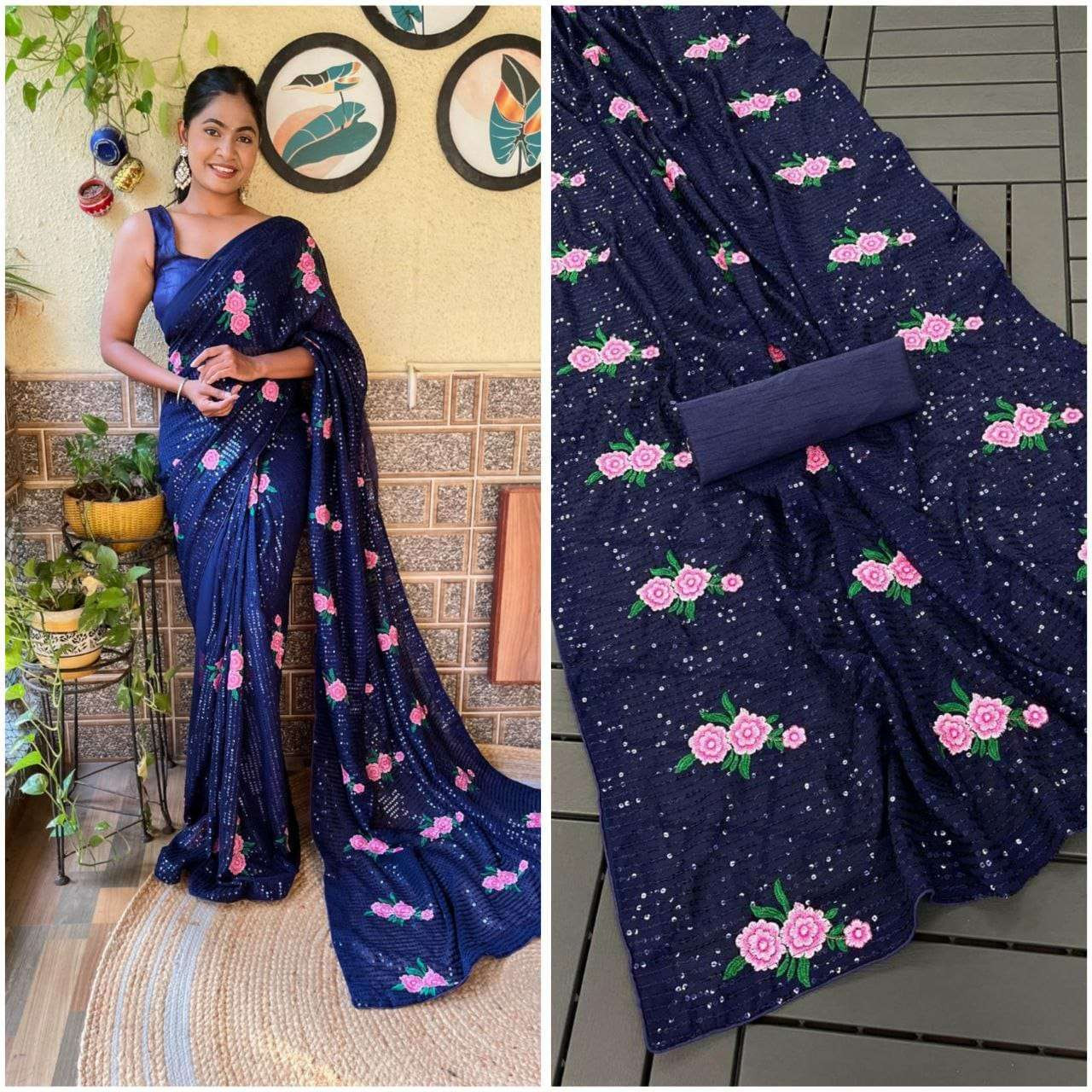 | Fabric Details | Saree : Premium georgette with Multy Thread And seqwance work & back patch support lace border With Piping | Blouse : Satin banglori (1 Mtr) | Unstitched Blouse |
