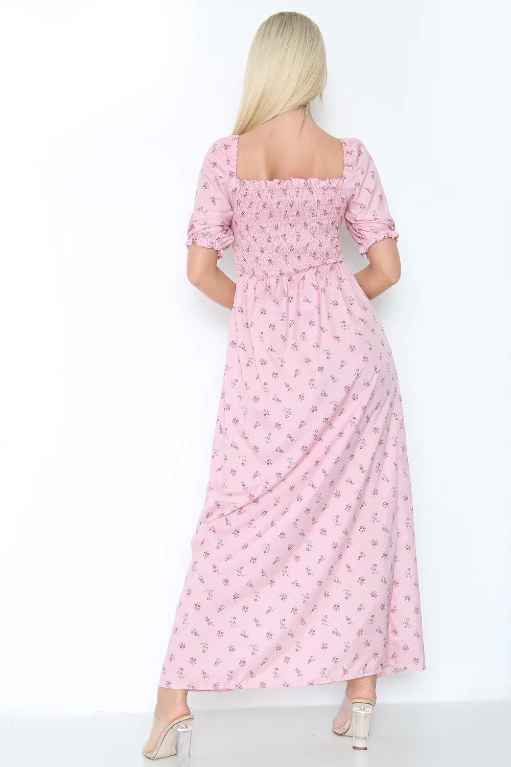 FLORAL PUFF SLEEVE MAXI WITH SIDE SLIT
