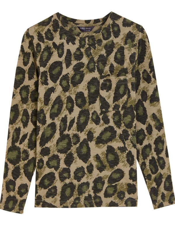 This animal print top is made from pure cotton with a cosy slub texture. Cut to a comfortable straight fit with a classic crew neckline. A front patch pocket makes for a casual finish. Length 26in/66cm.