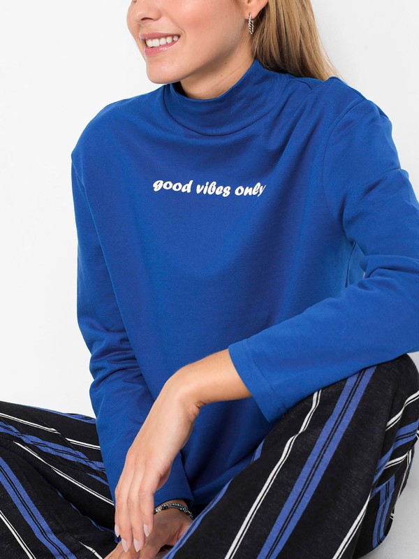 Made from a comfortable cotton fabric, it features a high neck and long sleeves. Length 60cm.