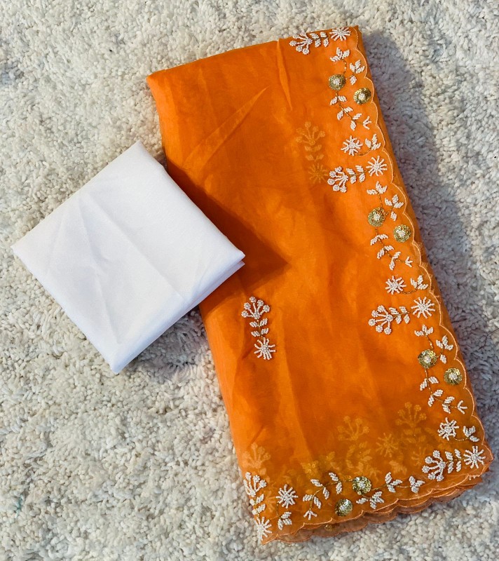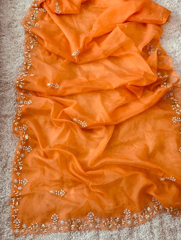 Pure organza saree with beautiful golden handcrafted work all over saree and white silk blouse