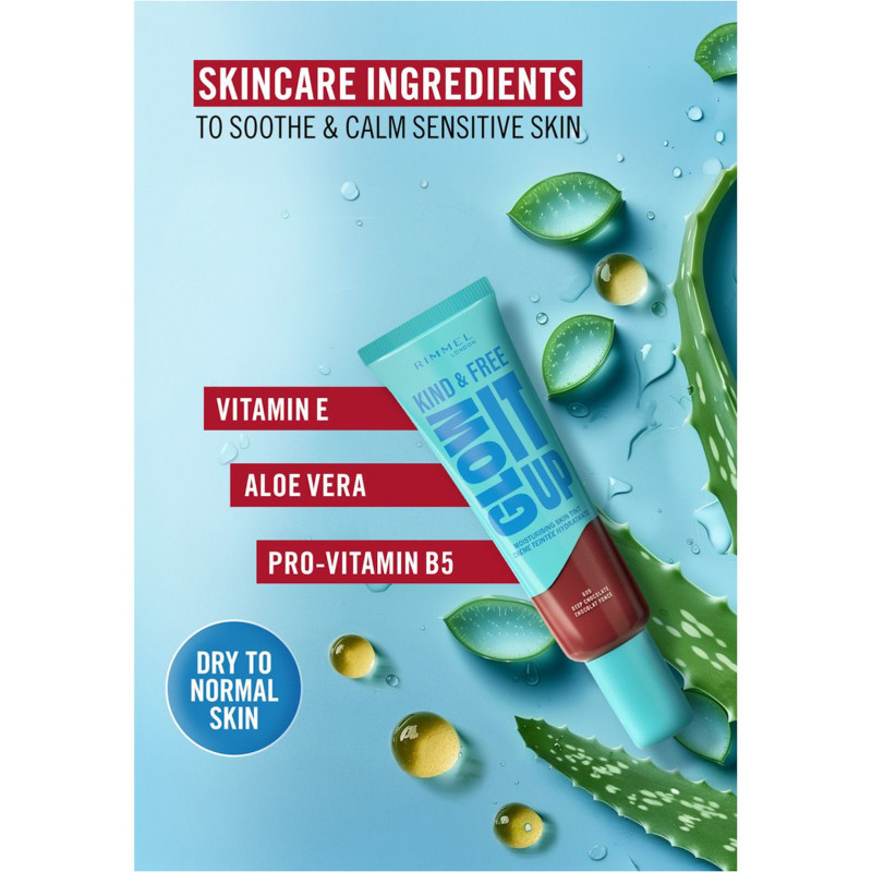 Rimmel Kind & Free Glow It Up Moisturising Skin Tint 30ml – 203 True Beige is a lightweight, skin-loving tint designed to deliver a natural, healthy glow with effortless coverage. It features a clean, vegan formula that is gentle on the skin and suitable for everyday wear. The ultra-fluid texture blends seamlessly, giving a second-skin effect that feels breathable and comfortable. Shade 203 True Beige is ideal for medium skin tones with neutral undertones, offering a balanced and natural finish. It provides sheer to light buildable coverage that evens out skin tone while maintaining a fresh, natural look. Enriched with nourishing ingredients, it helps keep the skin hydrated and smooth throughout the day. The moisturising formula enhances skin radiance without feeling heavy or greasy. It allows the skin to breathe while giving a soft, dewy glow. Perfect for no-makeup makeup looks, it enhances natural beauty with minimal effort. The formula helps blur minor imperfections and gives a healthy, refreshed appearance. It applies easily with fingers, sponge, or brush for a smooth blend. Dermatologically tested, it is suitable for sensitive skin types. The long-wearing formula ensures comfort and freshness for hours. The compact 30ml bottle is travel-friendly and easy to carry. Overall, it is ideal for achieving a glowing, hydrated, and naturally perfected complexion.