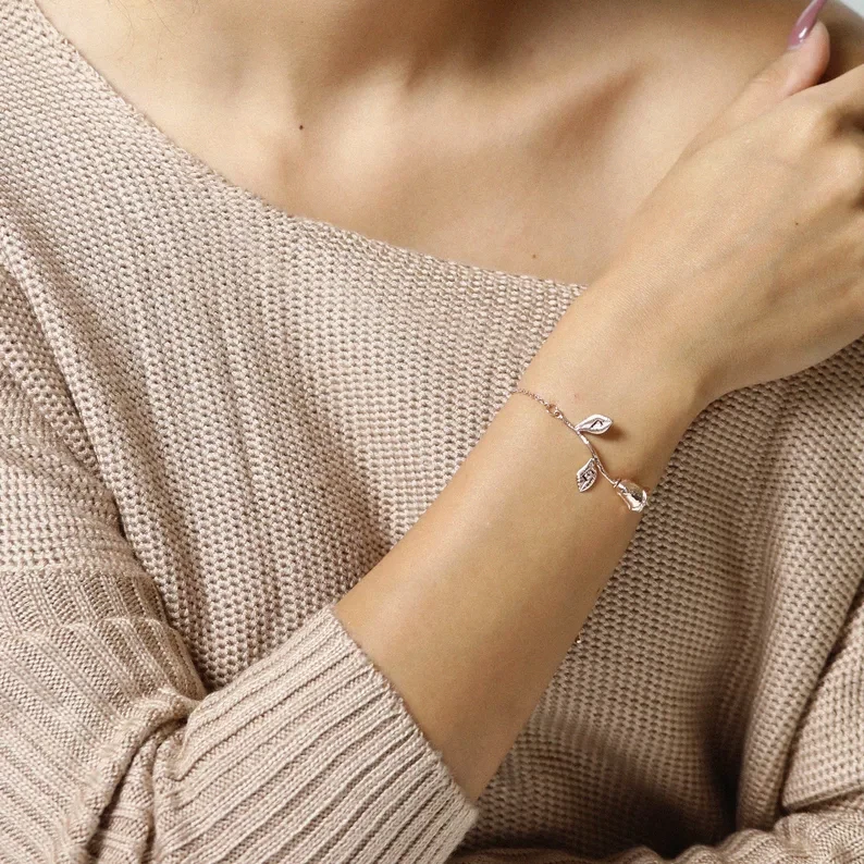 Sterling Silver Dainty Leaf Bracelet
