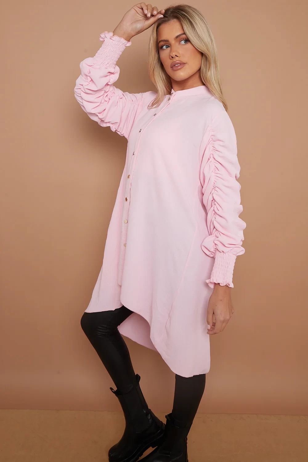 RUCHED GOLD BUTTON SHIRT