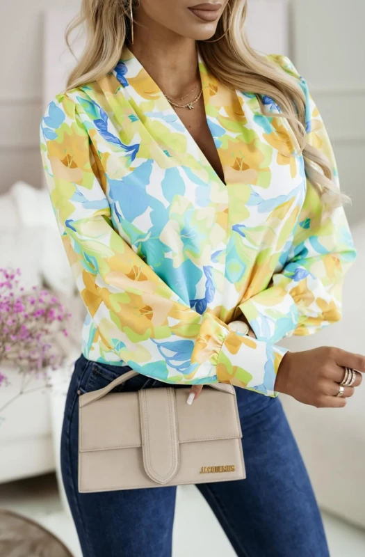The Sansa Ruched Detail Shirt Blouse Top is the perfect addition to your summer wardrobe. With its stunning abstract and floral patterns, this blouse is sure to catch attention. Featuring a flattering front 'V' cut neckline and ruched shoulder detail, as well as a soft to touch and stretchy fabric, this top is both stylish and comfortable. It comes in multiple colors and patterns and is available in approx. sizes of: S (UK 8), M (UK 10), and L (UK 12), with an approximate length of: 26"(67cm). Made in Italy with 100% Polyester, this blouse is a must-have for any fashion lover.
