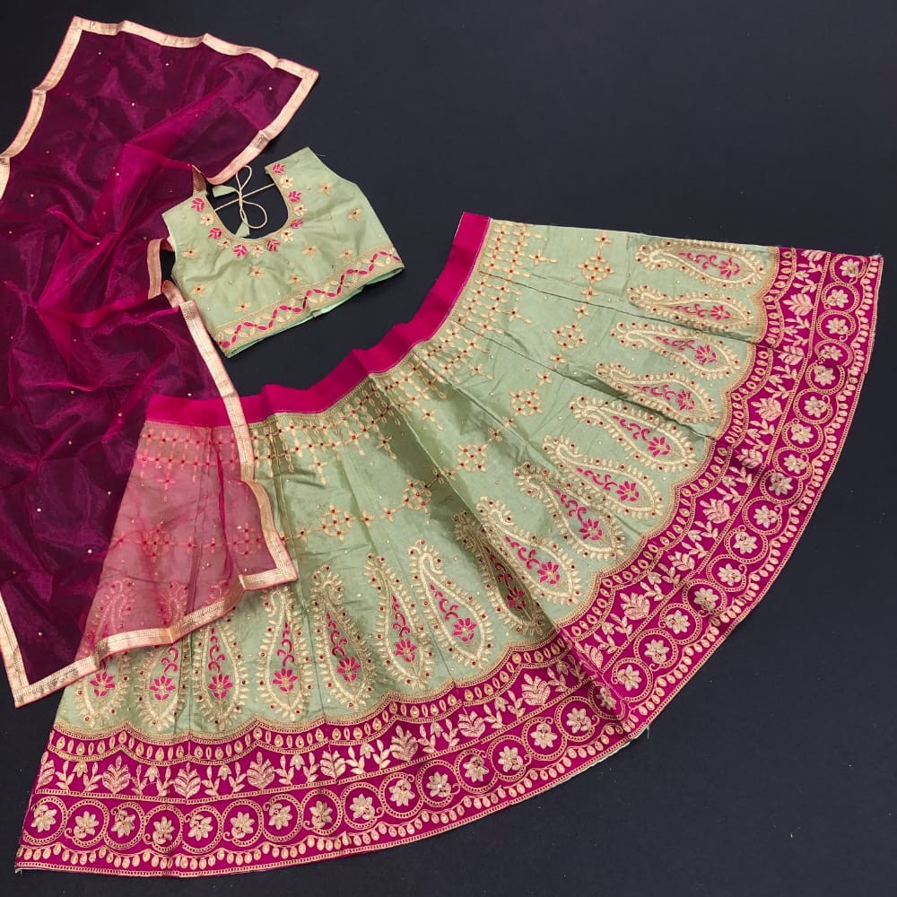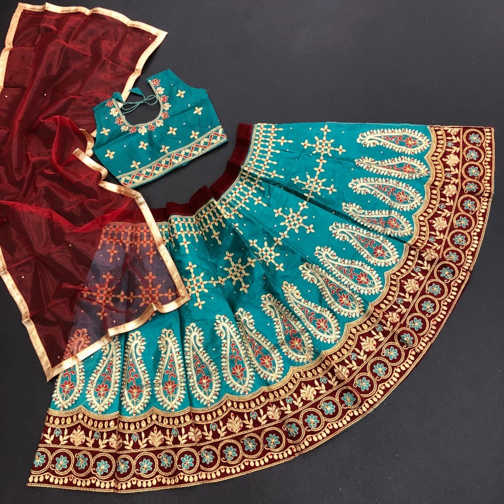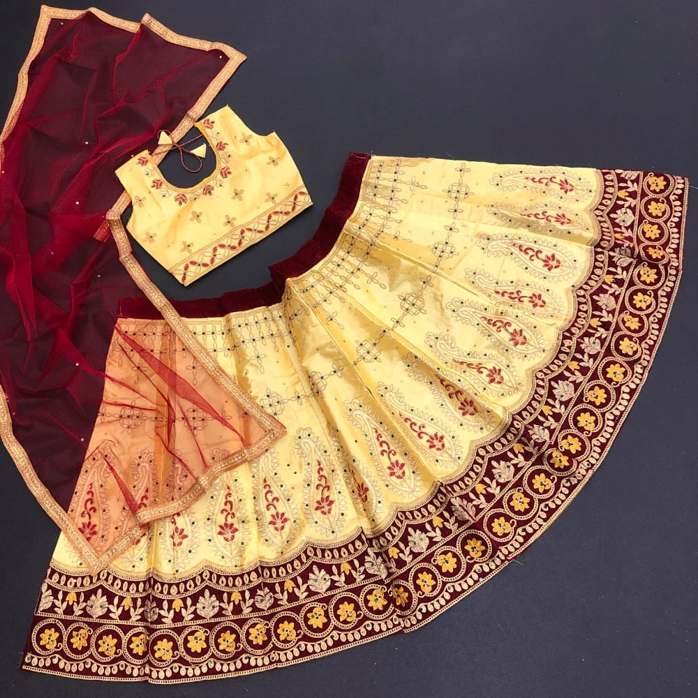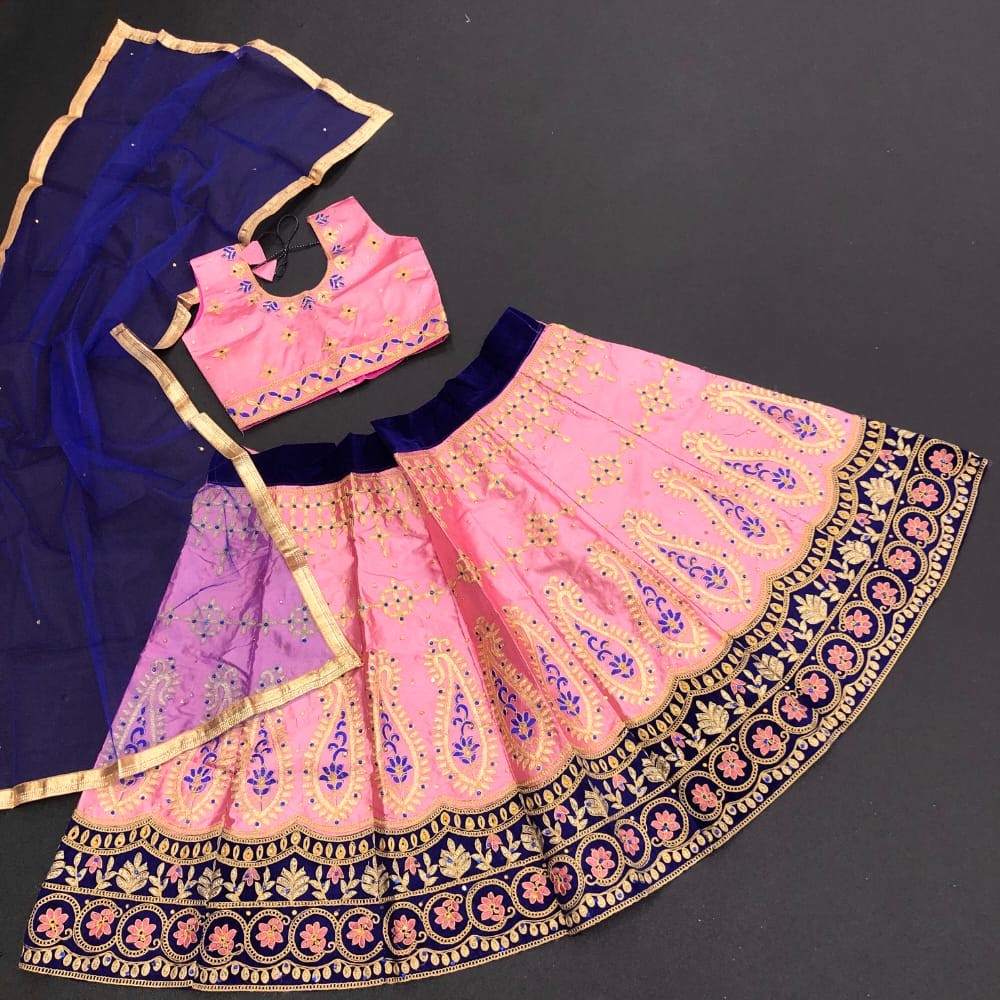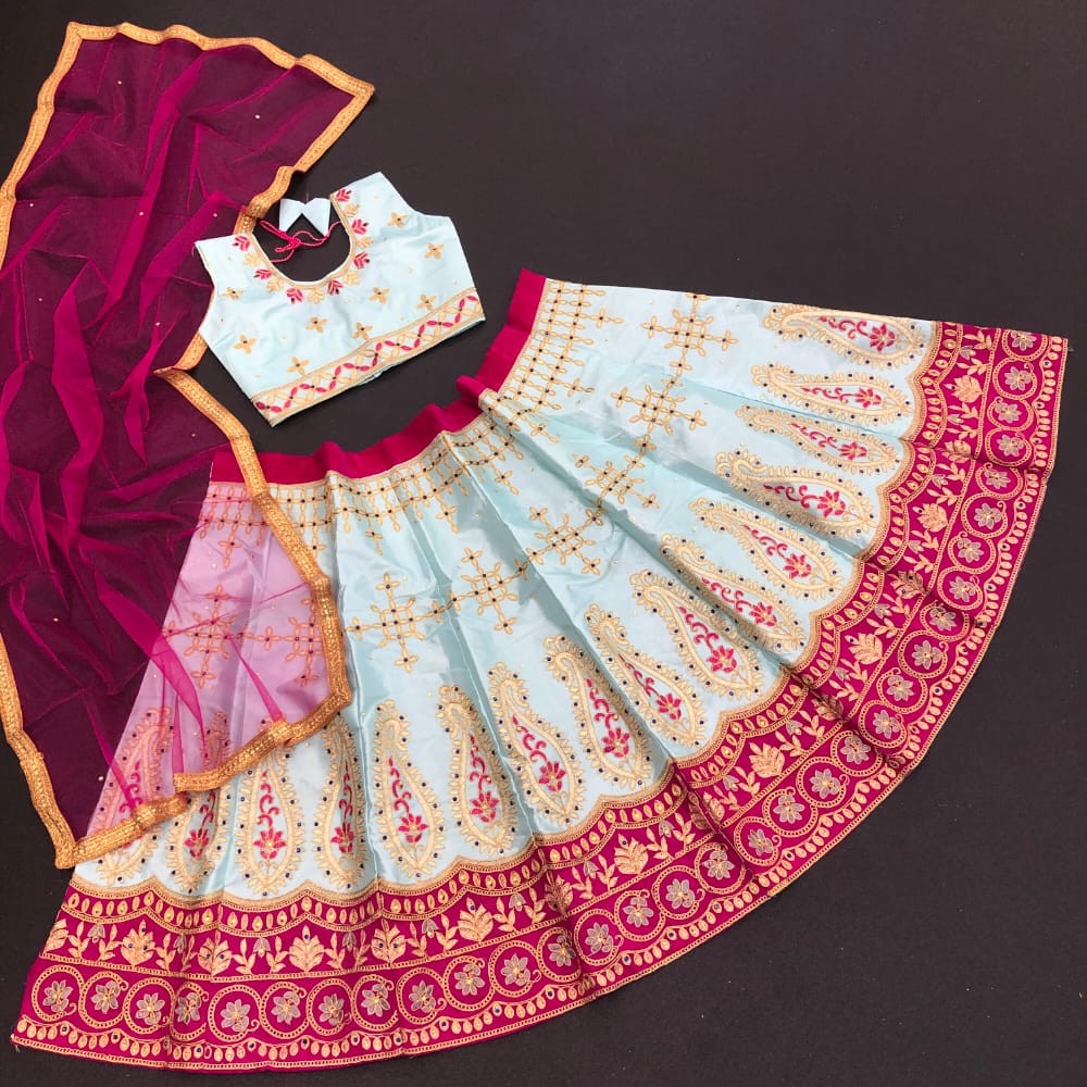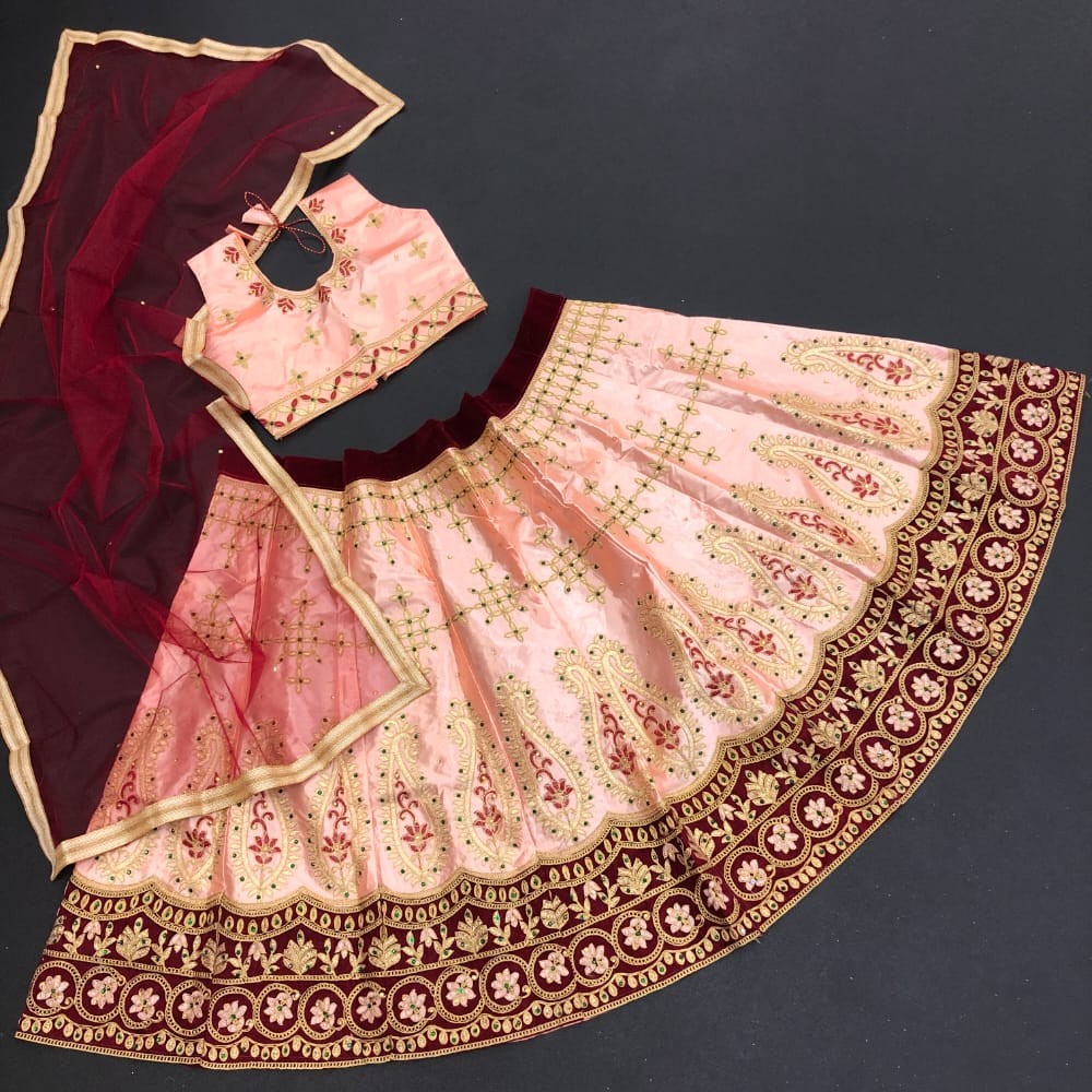 Passion For Fashion With AF KIDS LEHNGA Lehnga and Blouse Material : Satin embroidery work Dupatta Square Net Blouse Full Stitched