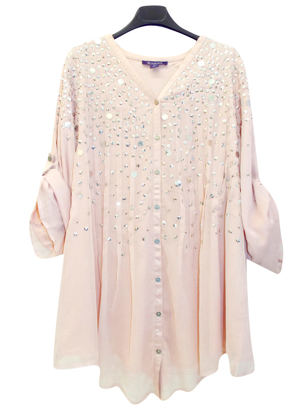 The relaxed silhouette flows around your curves, and the just-right 34in length pairs perfectly with your favourite jeans. V-neck, roll-tab sleeves.