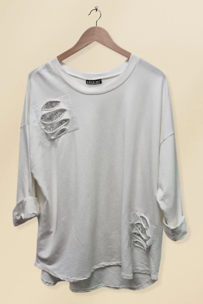 Sequin Patched Ripped Cotton Top
