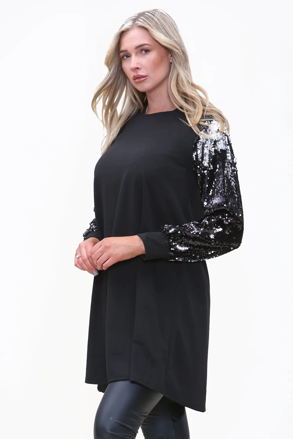 SEQUIN SLEEVE SWING DRESS