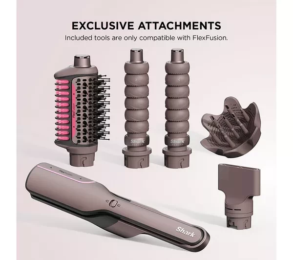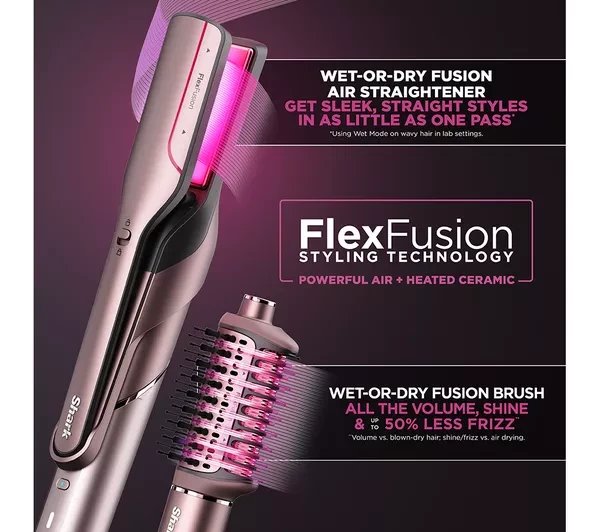From root to tip, the Shark FlexFusion Straight makes sure your hairstyle is a cut above the rest. Its powerful airflow and heated ceramics dry, straighten and style hair quickly and safely. Even if you've just stepped out the shower, you can enjoy a smooth frizz-free finish with no heat damage. The Auto-Wrap curlers give you effortless bouncy curls, with the Coanda effect using curved air to attract hair to the barrel. And if you're one of the lucky ones born with natural curls, use the diffuser to lift and define each lock.