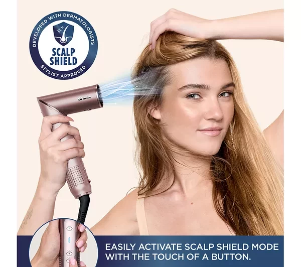 - ScalpShield Mode reduces the air temperature to protect new hair growth