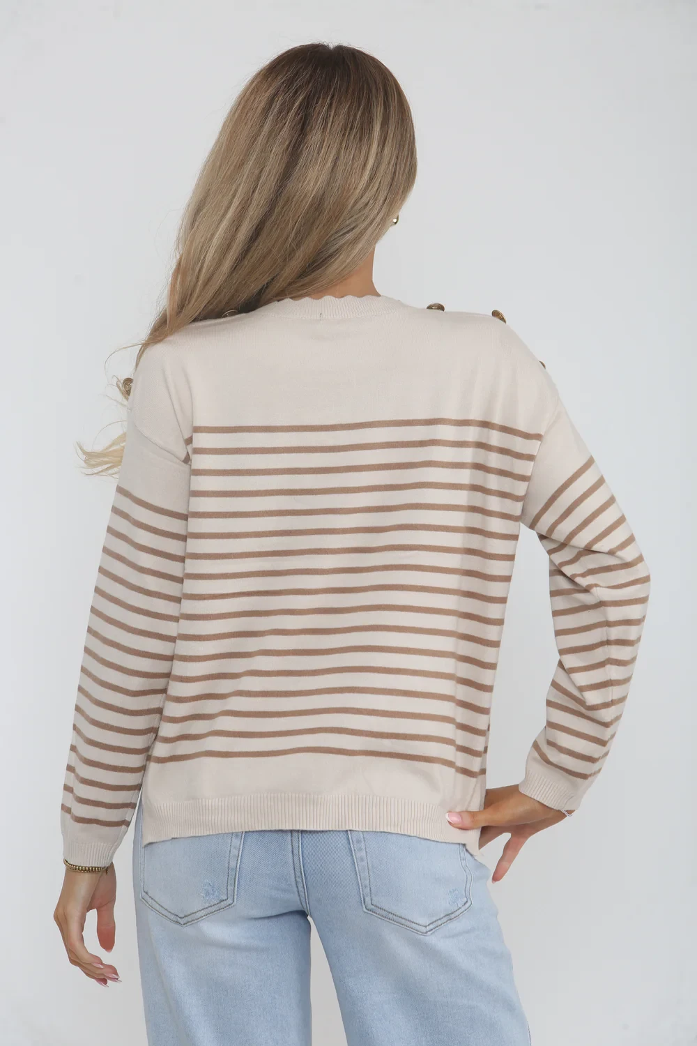 SHOULDER GOLD BUTTON STRIPE JUMPER
