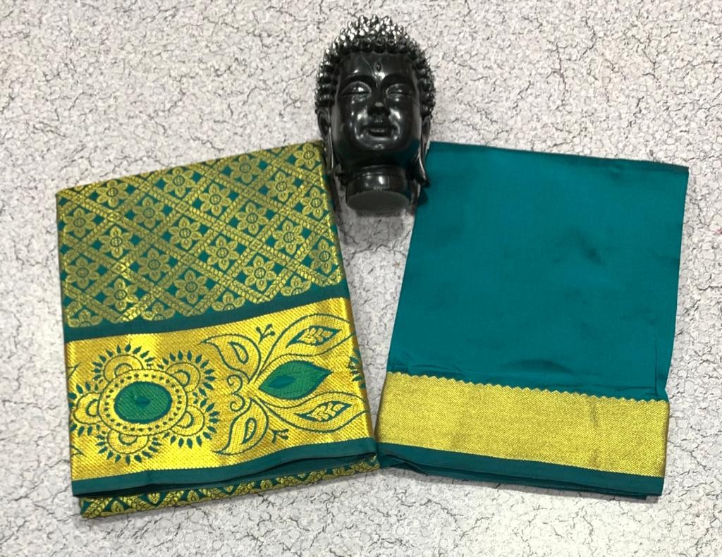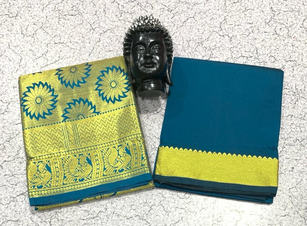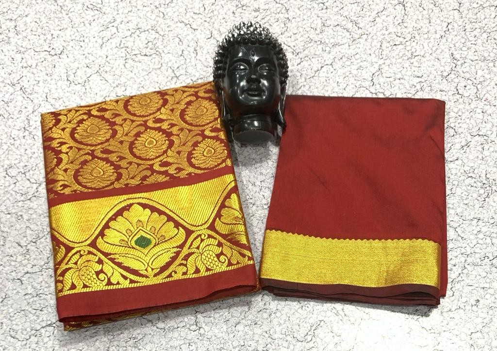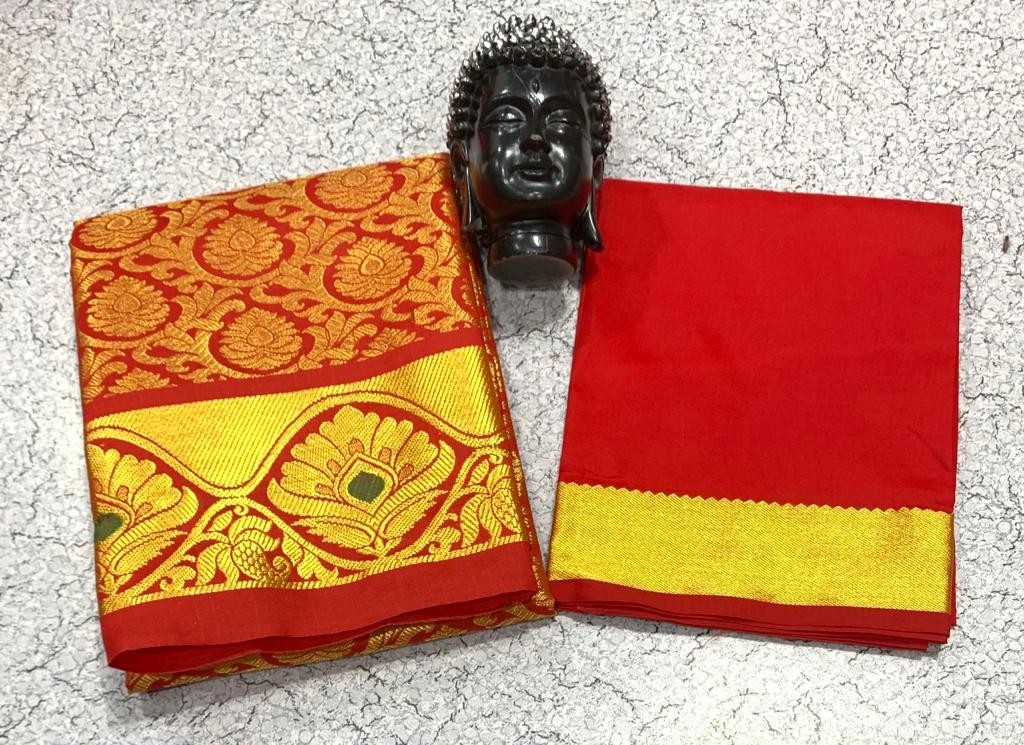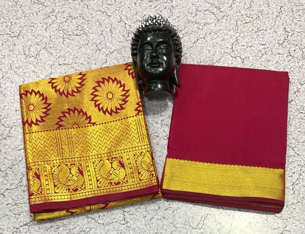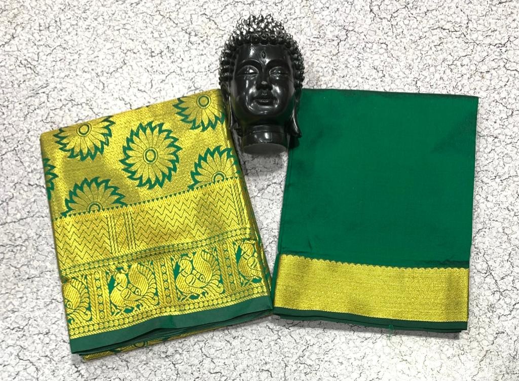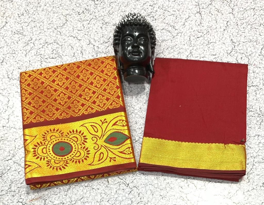 GOLD JARI WORK AGE 1 TO 7 FULL JACURD WORK Pavadai 1.80 mts Blouse 1 mts