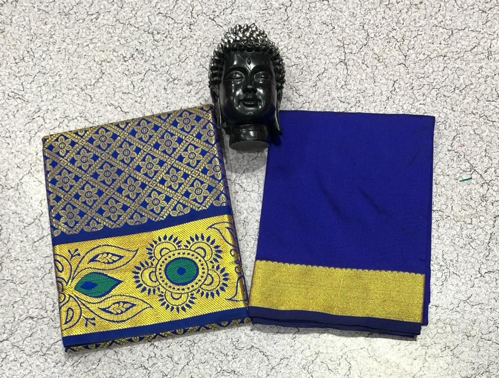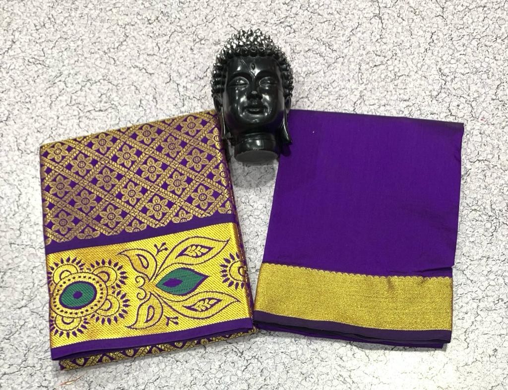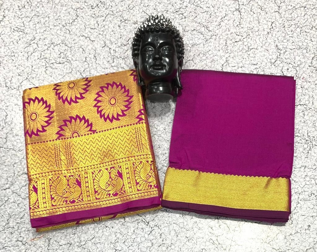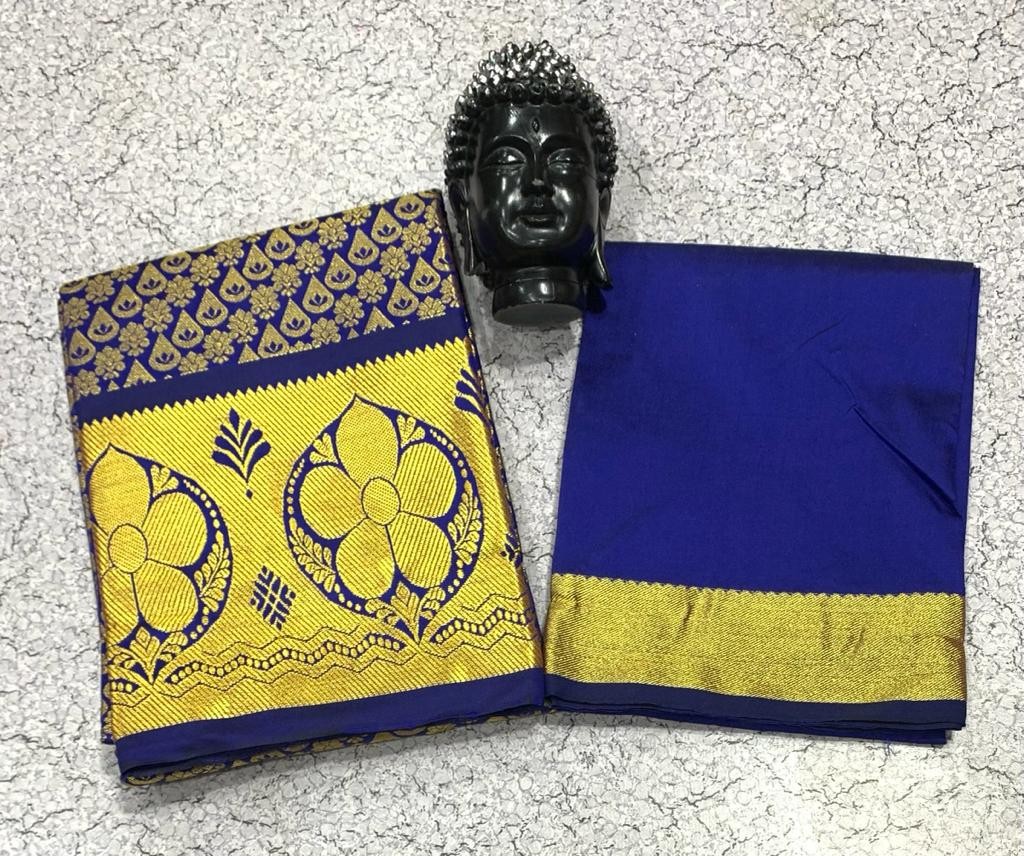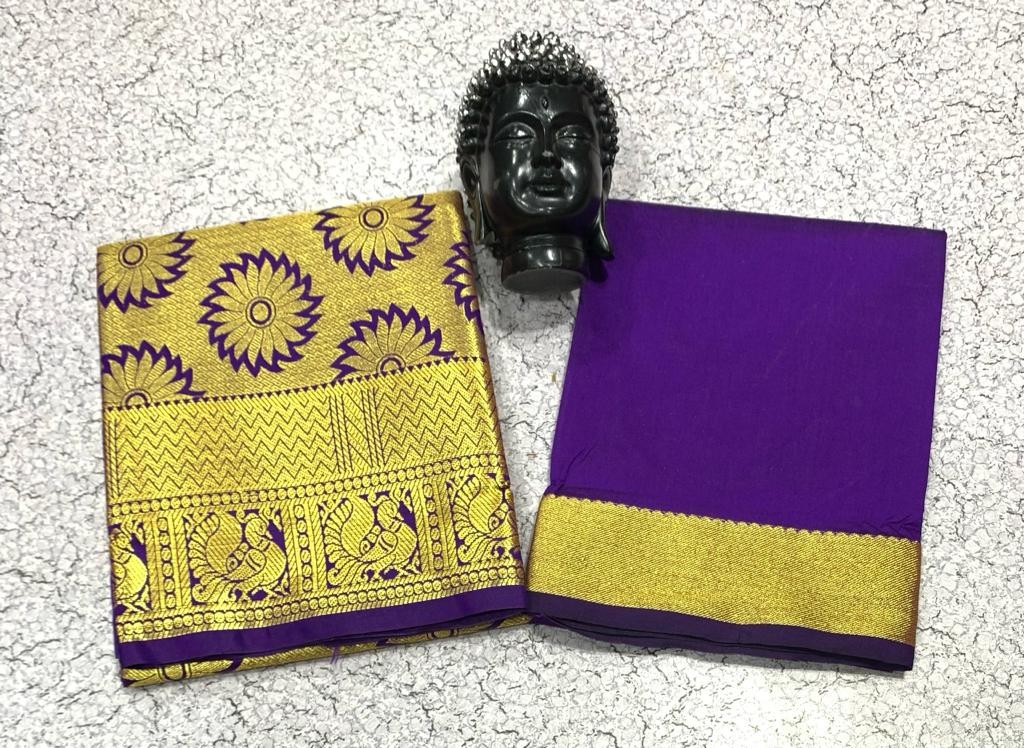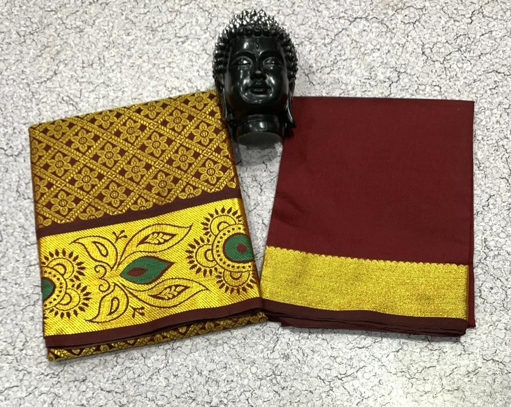 GOLD JARI WORK AGE 1 TO 7 FULL JACURD WORK Pavadai 1.80 mts Blouse 1 mts