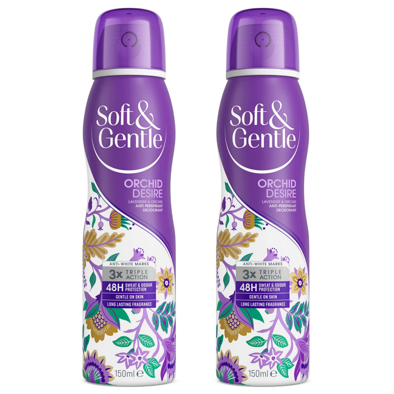 Soft and Gentle Orchid Desire Lavender & Orchid Scent Anti-Perspirant Deodorant Body Spray 150ml provides reliable protection while enveloping you in a calming floral fragrance. Its advanced anti-perspirant formula offers up to 48 hours of effective protection against sweat and body odor. Infused with soothing lavender and elegant orchid notes for a soft, feminine scent. The gentle formula is kind to skin and suitable for everyday use. Quick-drying technology absorbs fast without leaving sticky or wet residue. Keeps underarms feeling fresh, dry, and comfortable throughout the day. Lightweight spray ensures even and easy application. Dermatologically tested for skin compatibility. Ideal for daily routines, work, or special occasions. Leaves a long-lasting, delicate fragrance without being overpowering. Suitable for all skin types, including sensitive skin. Helps maintain confidence and all-day freshness. Compact 150ml size is convenient for home or travel use. Provides effective odor control with a calm, elegant finish. Soft and Gentle Orchid Desire Lavender & Orchid Body Spray combines lasting protection with soothing floral freshness.
