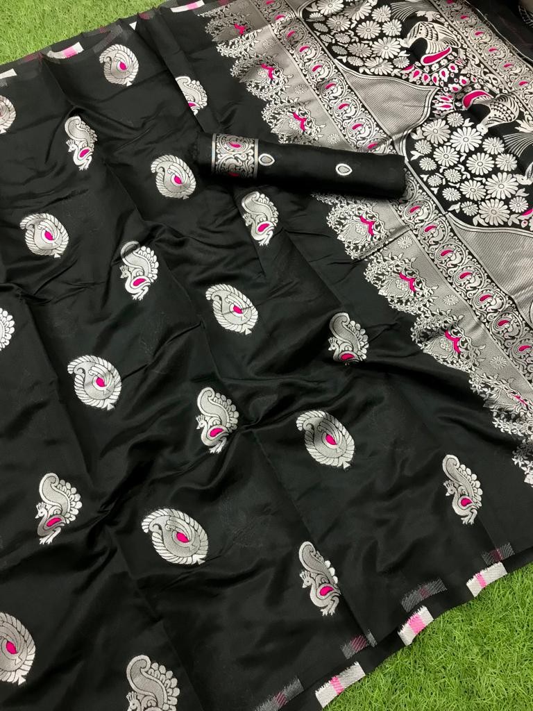 Fabric :- Soft Banrasi Cotton Silk saree with weaving Silver jari and attractive Rich pallu jari weaving.
