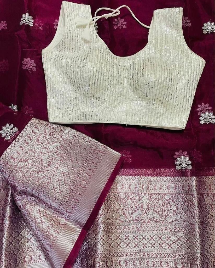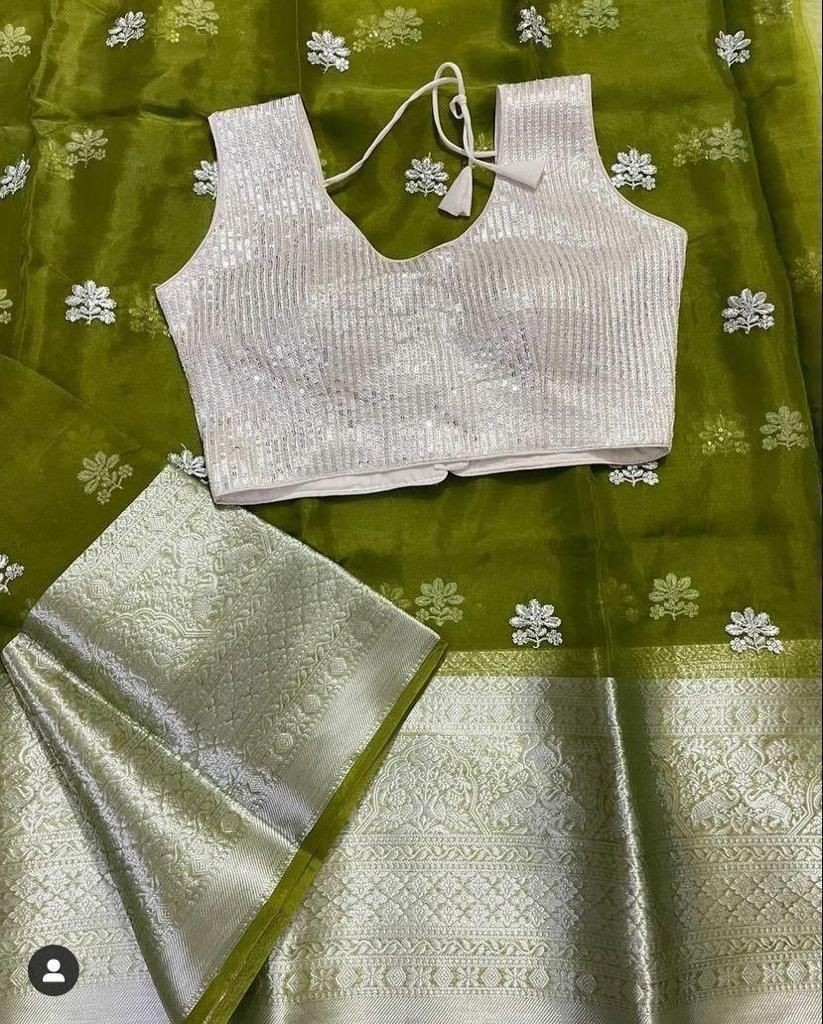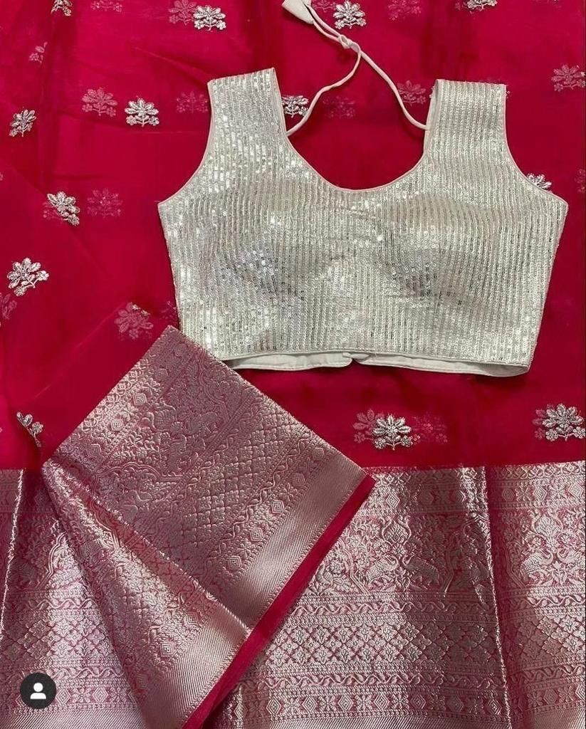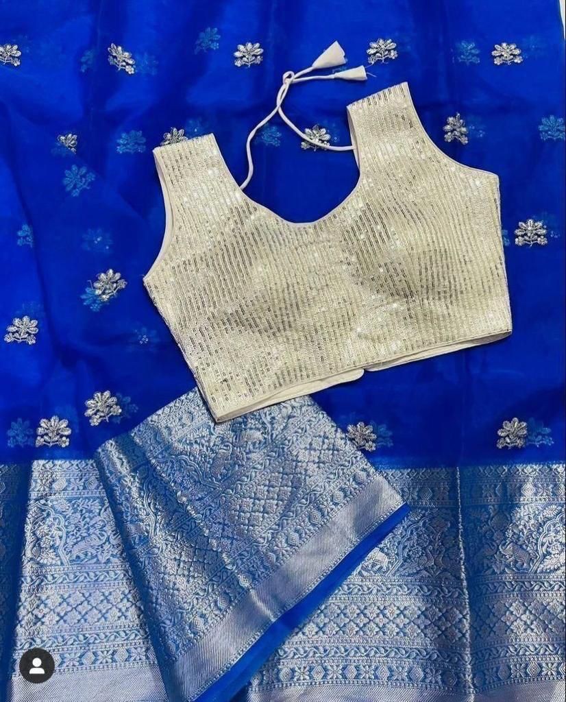 *QUALITY*- SOFT Nylon Orgenza Jacquard Multi Squence Full Worked Saree ! *BLOUSE*- Squence full Stich Blouse Free Size Up To 42