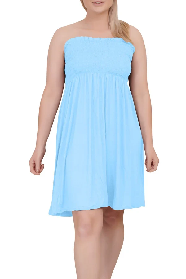 Style is all in the details. Assist your customers by restocking this gorgeous item. Features Viscose material - Women Plain Sheering Boob Tub - Sleeveless - Bandeau Gather Mini Dress. This garment is a must have any store this season.