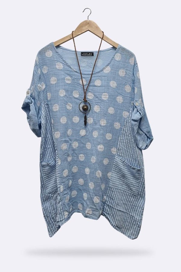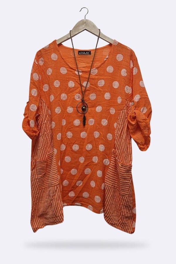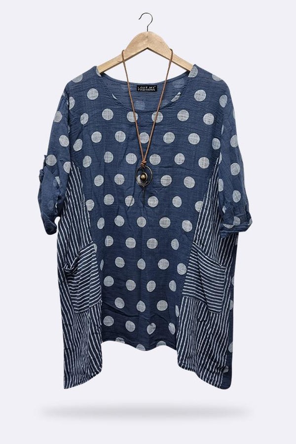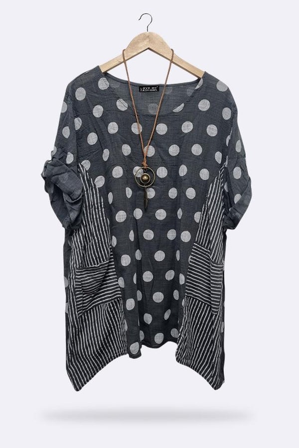 Stripe & Dot Panelled Tunic Top