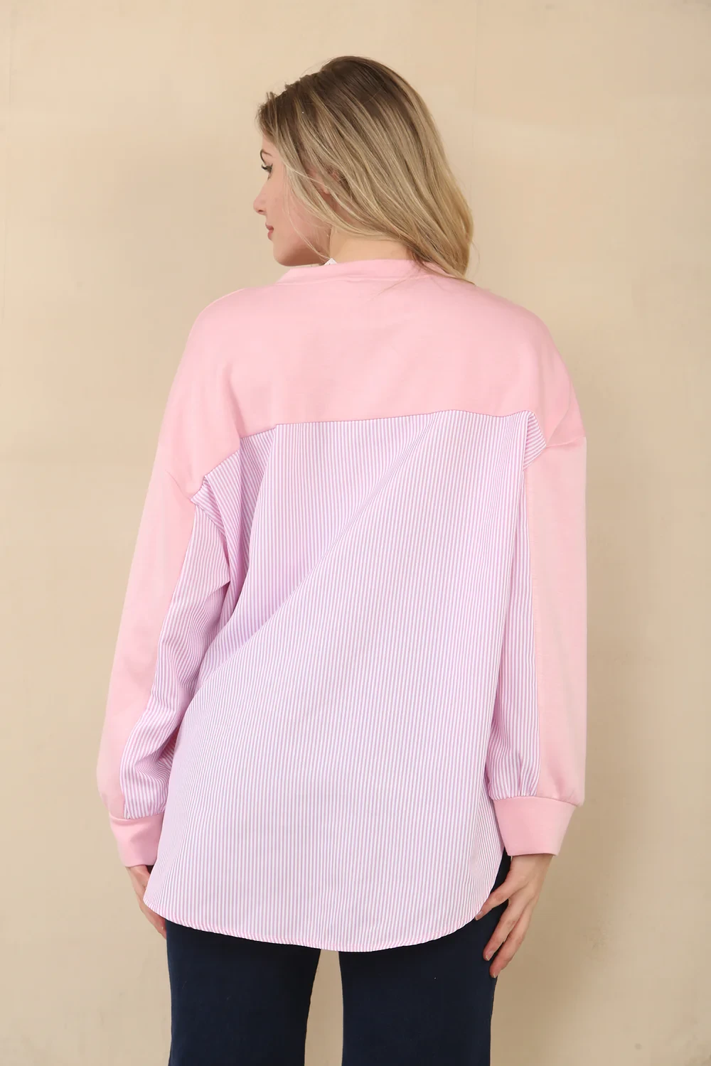 STRIPE SHIRT DETAIL SWEAT