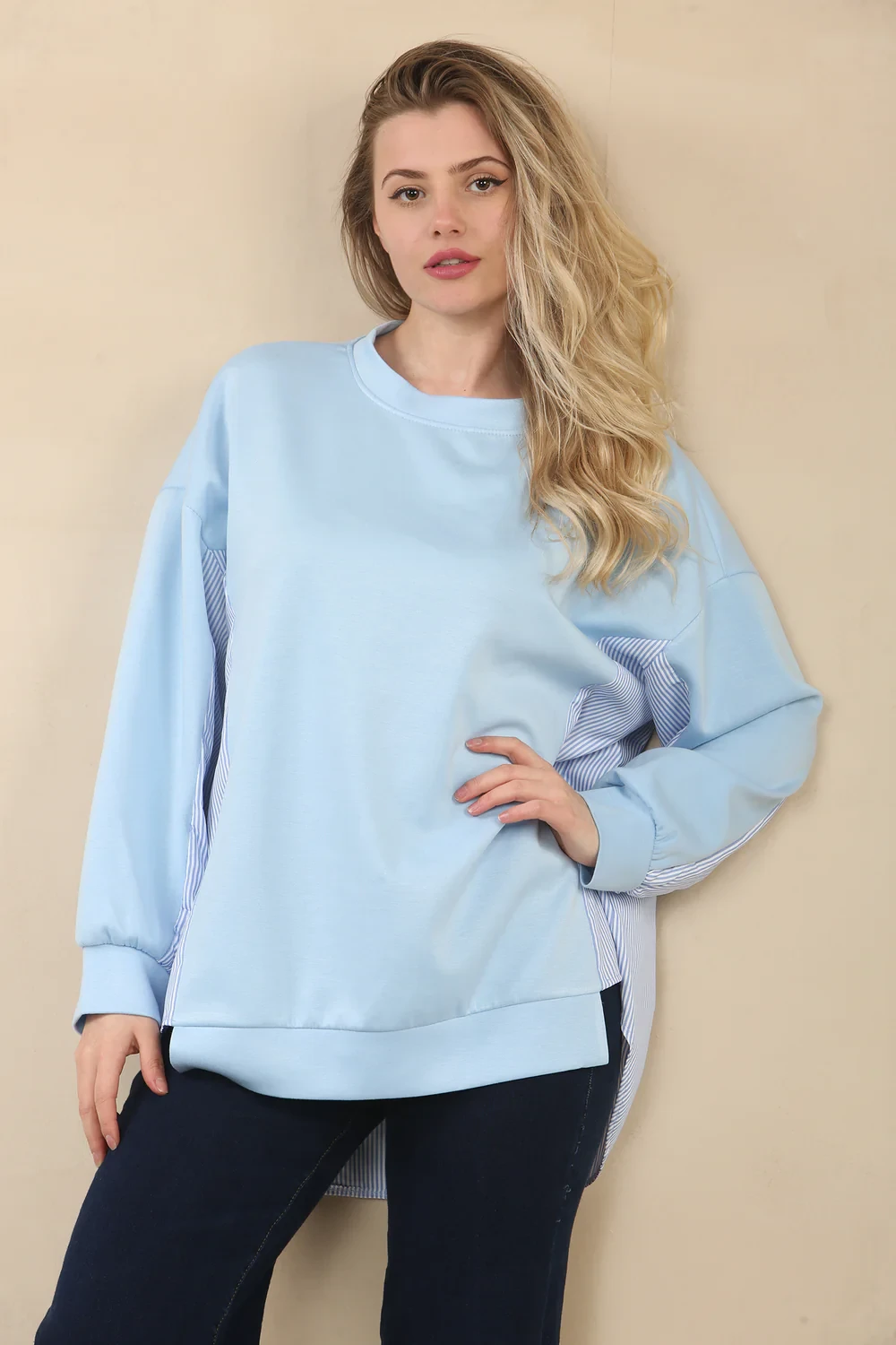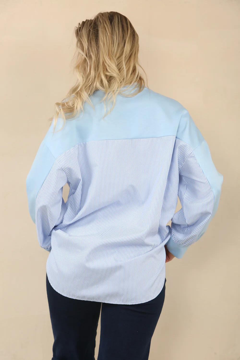 STRIPE SHIRT DETAIL SWEAT - BLUE